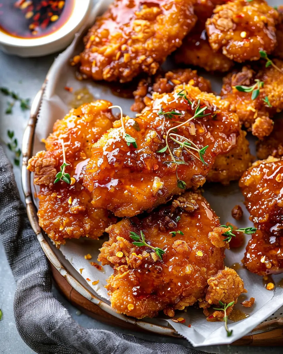 Once the chicken is out of the oven, let it rest for a few minutes. This moment is crucial—it helps retain the juiciness of the chicken. Then, drizzle that divine hot honey sauce over the top. Serve with a side of coleslaw or a fresh salad to balance the heat and sweetness.