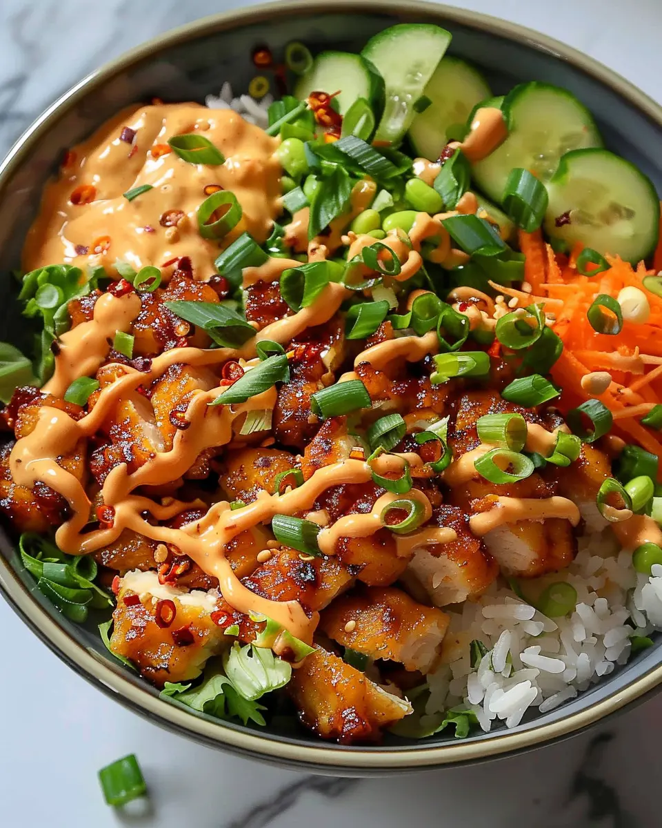 To make your Bang Bang Chicken Bowl really shine, focus on the chicken. Cook it in smaller pieces to ensure even cooking and better flavor absorption. For a crispy texture, coat the chicken with cornstarch before frying. Want to elevate the taste? Marinate the chicken in a mix of soy sauce and garlic for at least 30 minutes. This not only infuses flavor but also keeps the meat juicy!
