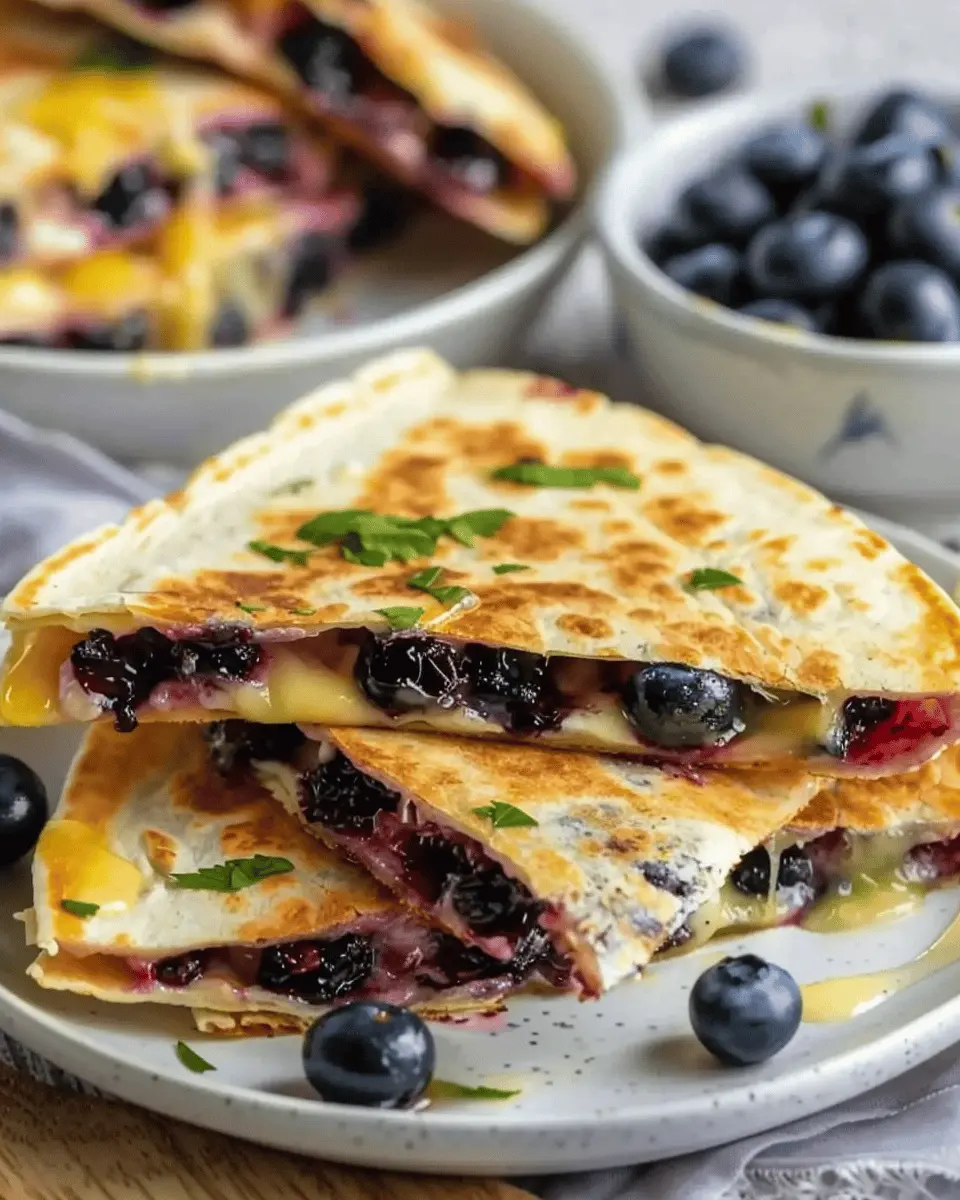 For that golden-brown effect, consider using butter to cook your quesadilla instead of oil. It adds a delicious richness that pairs beautifully with the sweetness of blueberries.