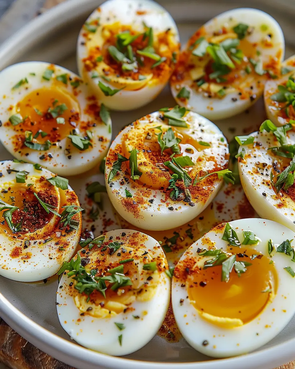 Presentation plays a key role in making your meal more enticing, and your Cajun Boiled Eggs are no exception. Arrange them on a colorful platter with a sprinkle of chopped chives or parsley for a fresh pop. You could even slice the eggs in half and fill the centers with a mixture of egg yolks, Greek yogurt, and spices for a fun twist on deviled eggs! Another idea? Serve them in small bowls with dipping sauces like sriracha mayo or a classic garlic aioli for an interactive dining experience.