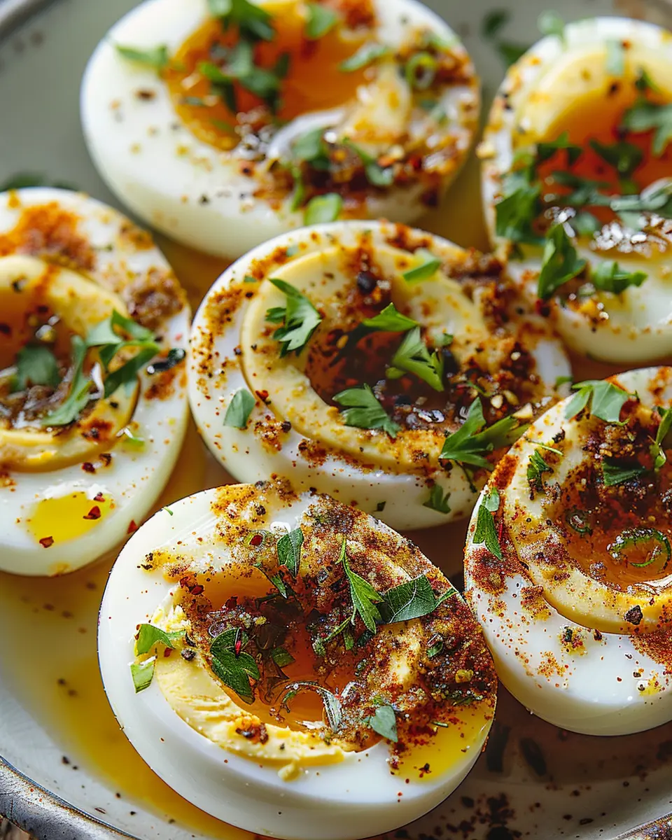 - For extra flavor, marinate the boiled eggs in the spicy oil for a few hours before serving.