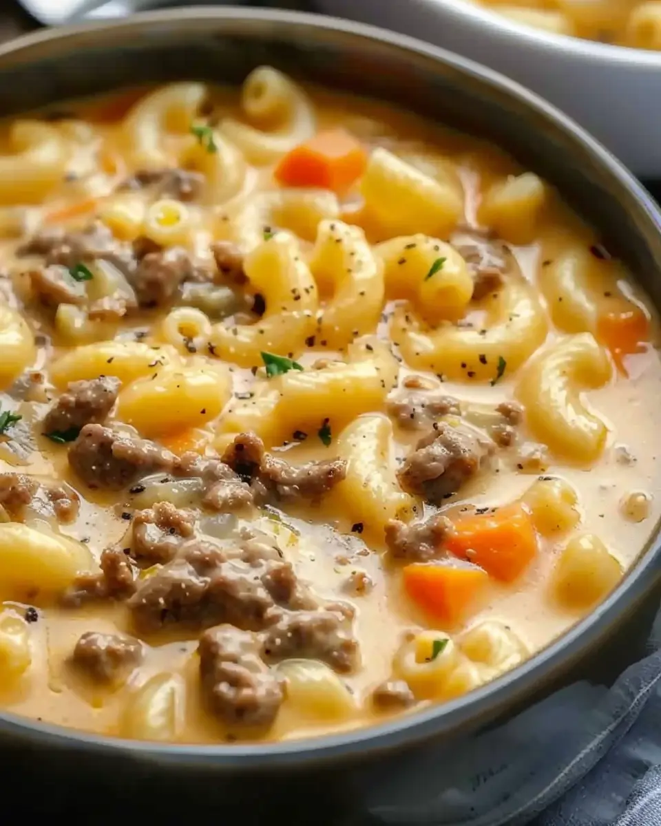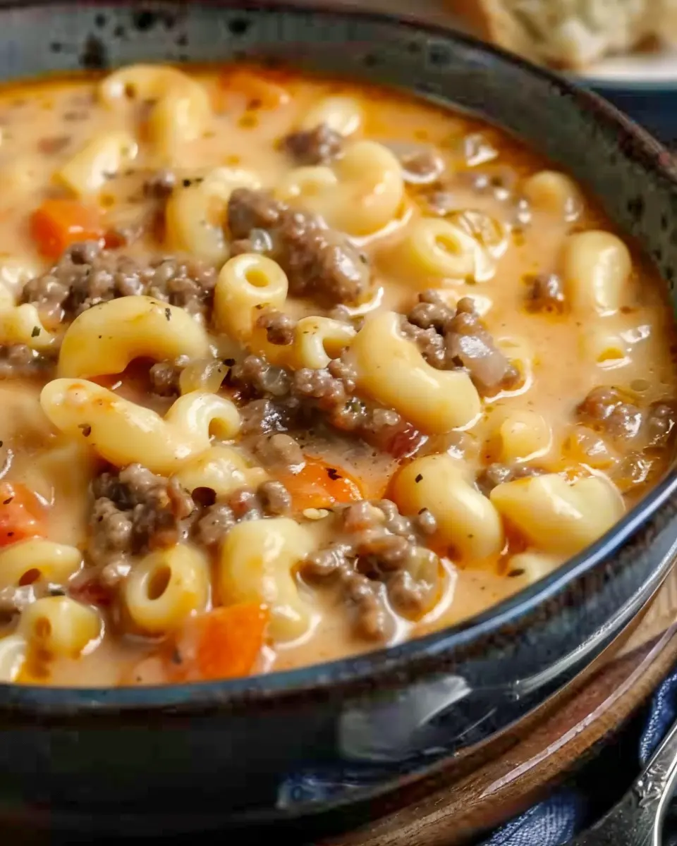 PrintCheeseburger Macaroni Soup: A Warm, Indulgent Comfort Bowl