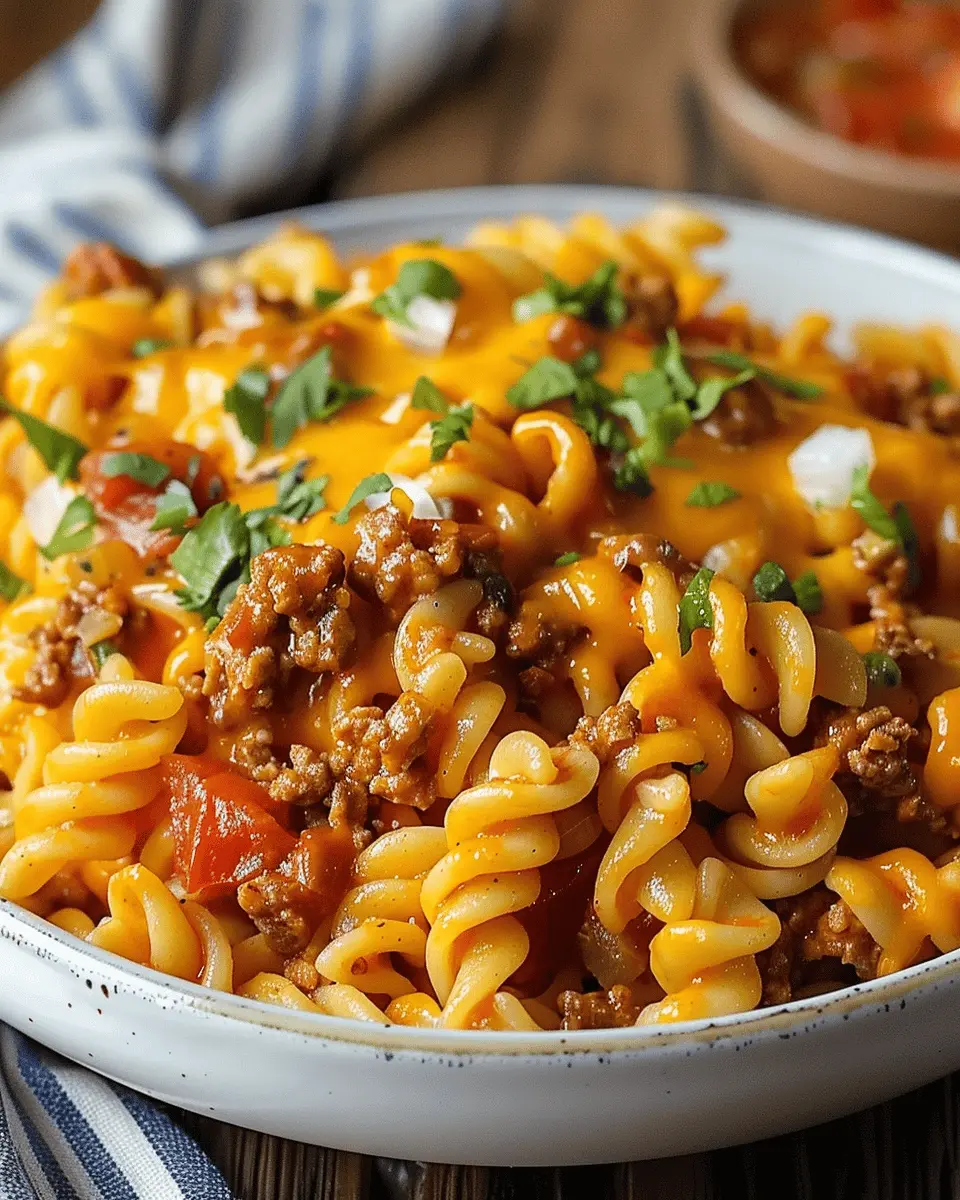 PrintCheesy Beef Taco Pasta: The Indulgent Comfort Food You’ll Love