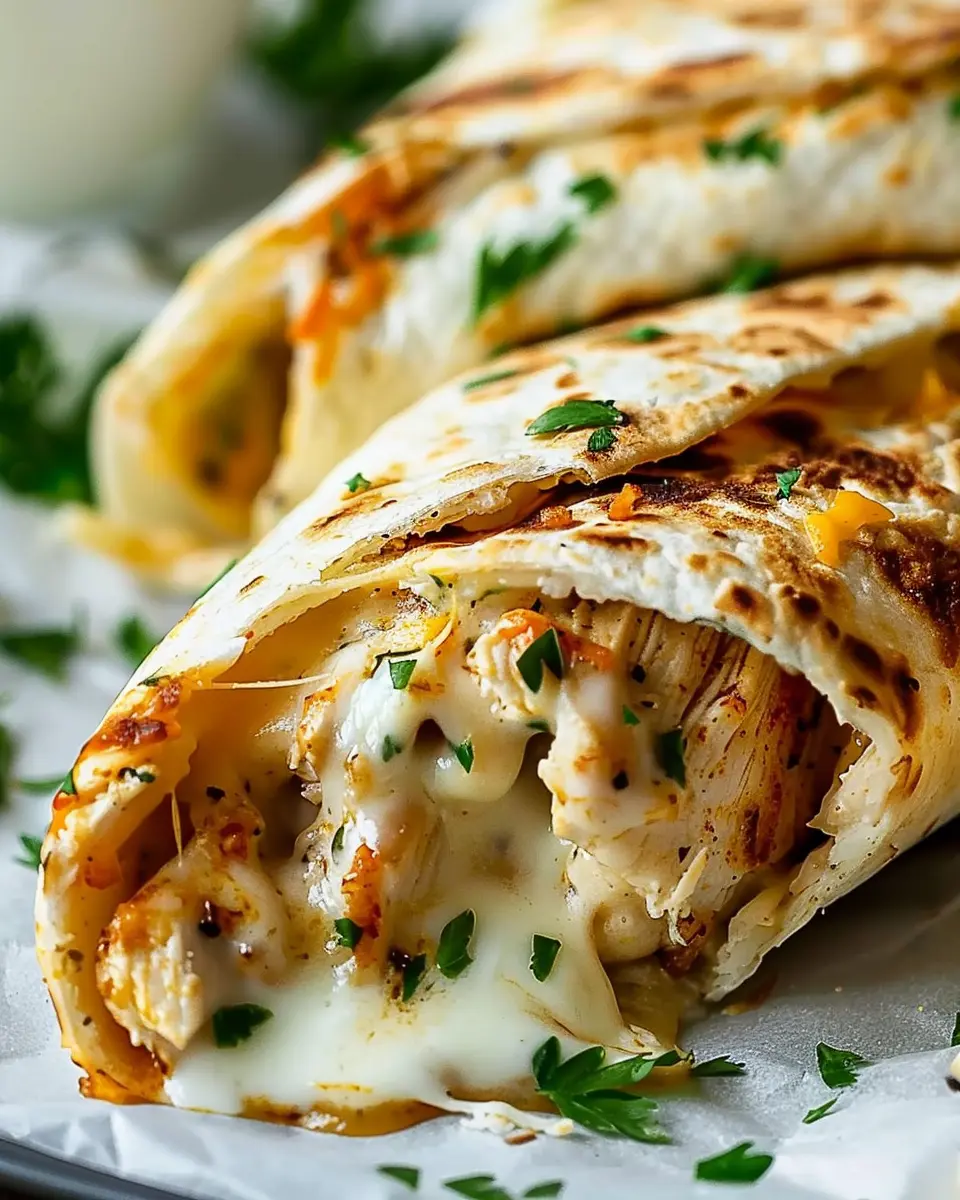 PrintCheesy Garlic Chicken Wraps: Indulgent Flavor that Delights