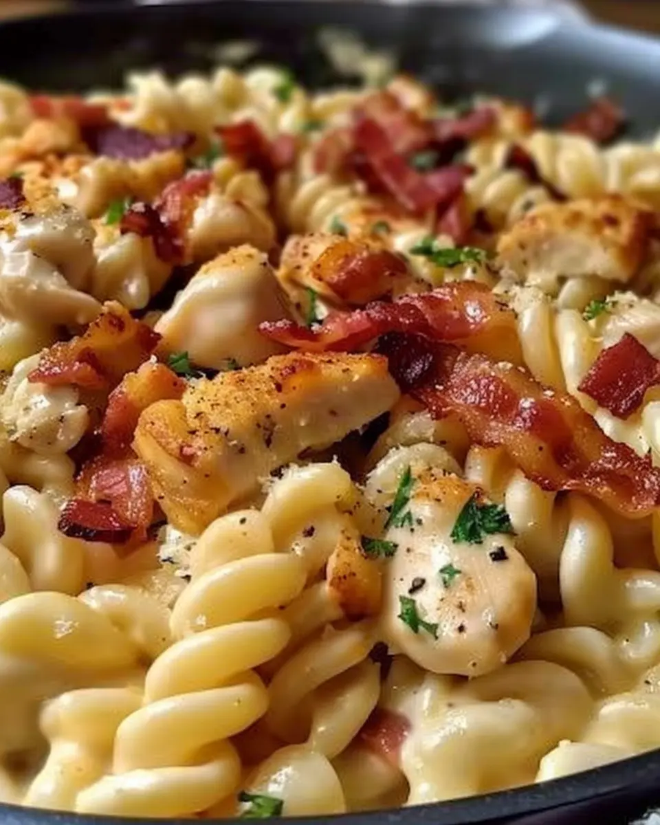 PrintChicken Bacon Ranch Pasta: Easy Turkey Bacon Delight for Dinner