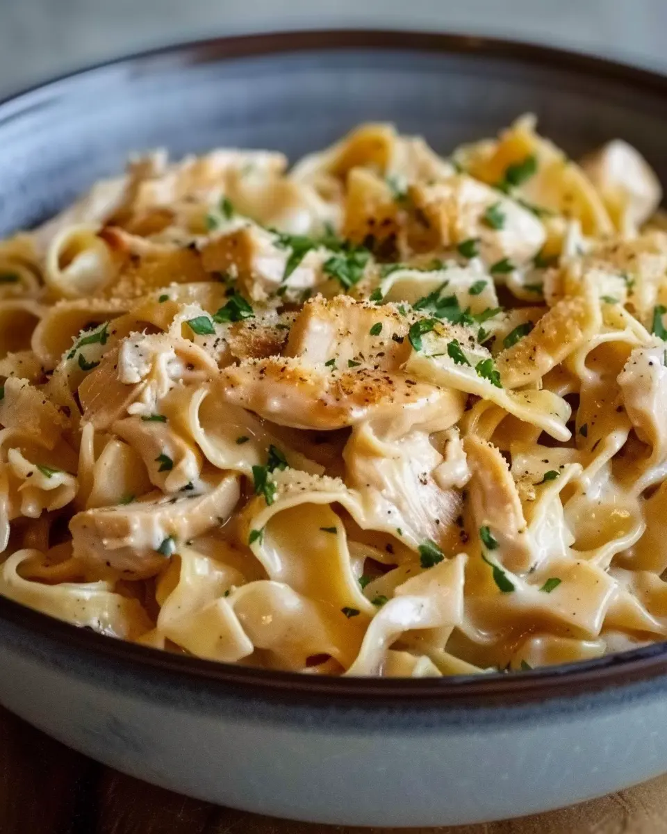 PrintChicken Buttered Noodles: Easy Comfort Food with Turkey Bacon
