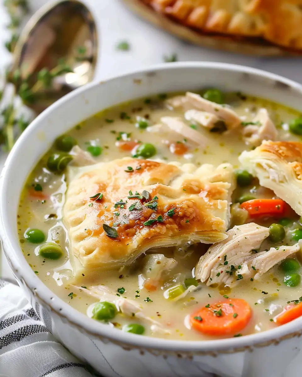 Don’t forget that presentation matters! A sprinkle of fresh herbs like thyme or parsley can brighten up your chicken pot pie soup, adding a pop of color and flavor. Consider drizzling a touch of heavy cream or a dollop of sour cream on top for a creamy finish. If you want to get a little adventurous, crispy turkey bacon bits can add a delightful crunch.