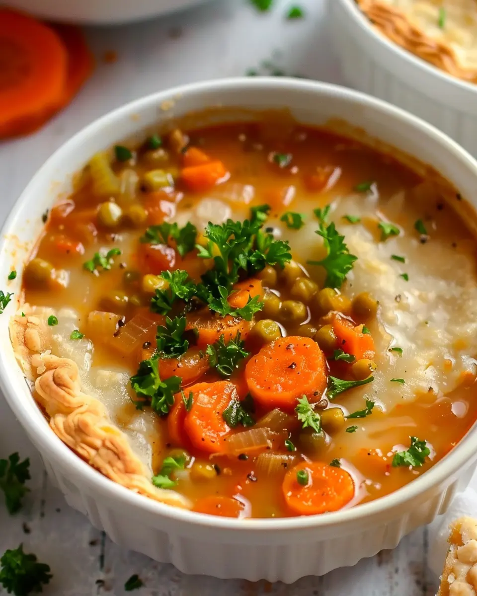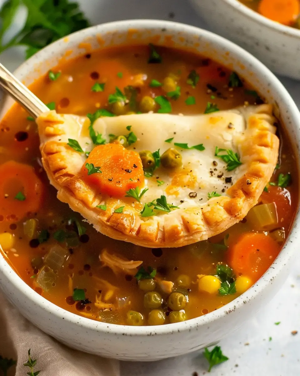 Enjoy a hearty and flavorful Chicken Pot Pie Soup, perfect for a cozy dinner.
