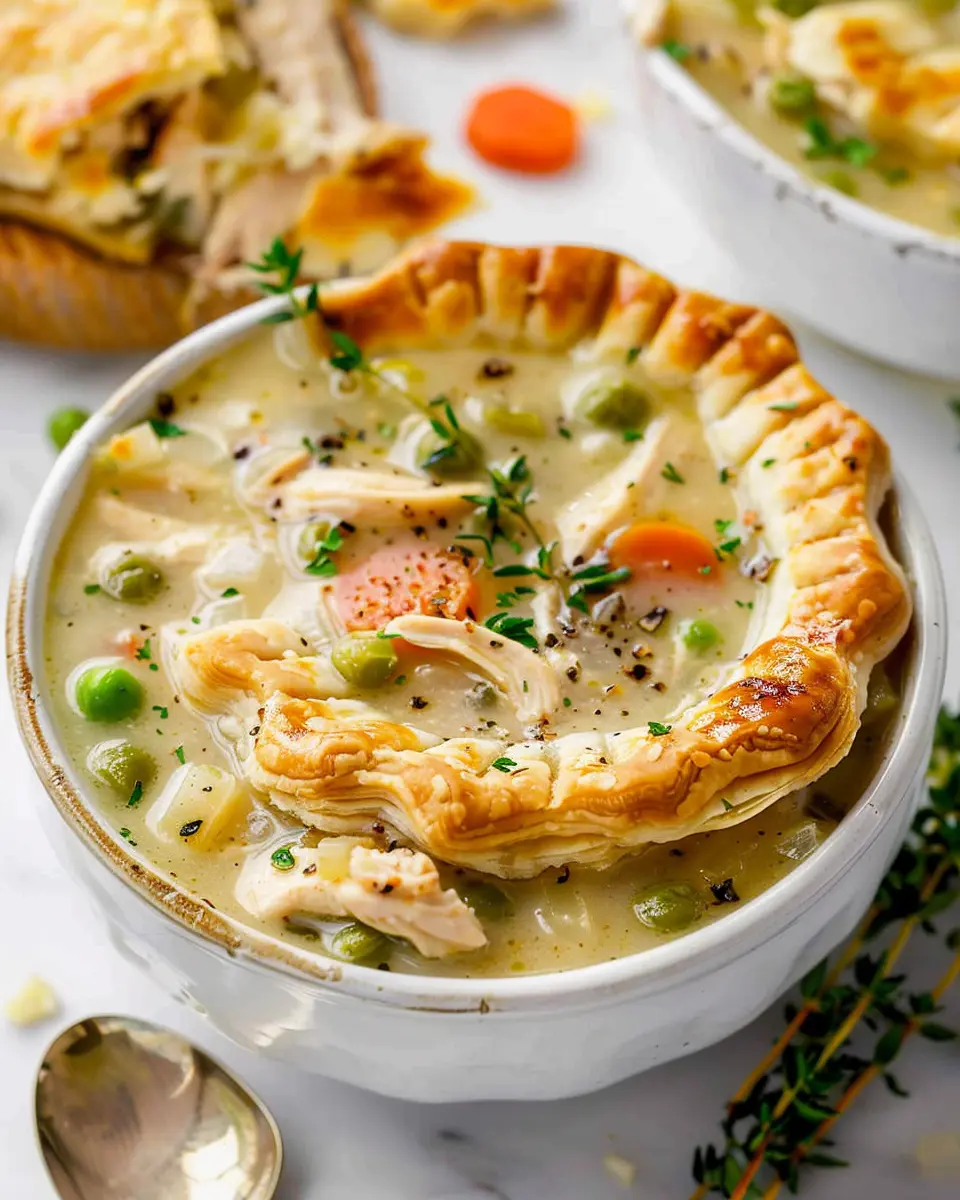 Serving chicken pot pie soup can be as fun as eating it! Here are some creative ideas: