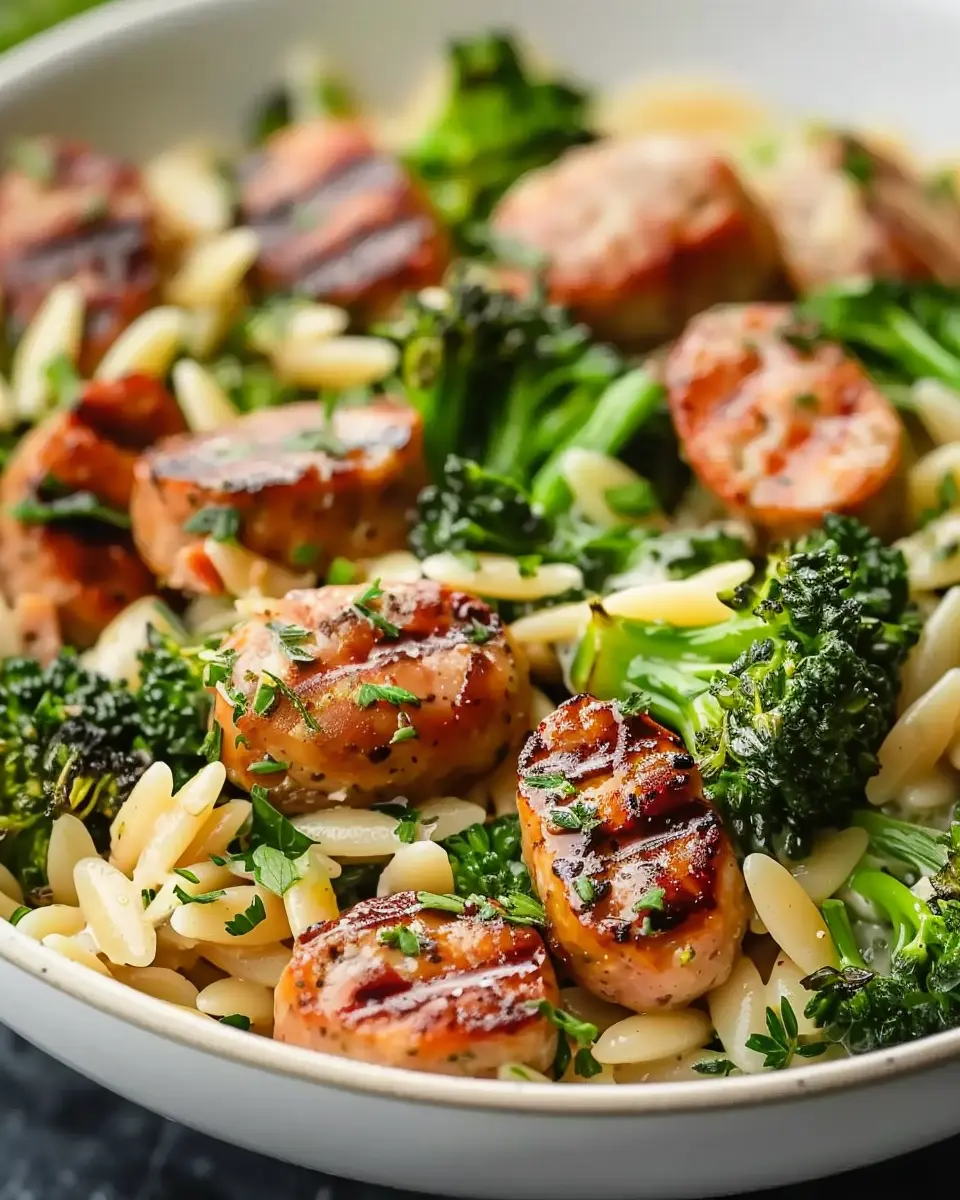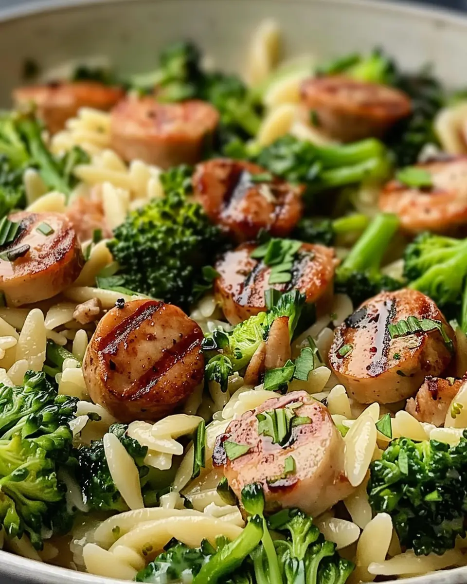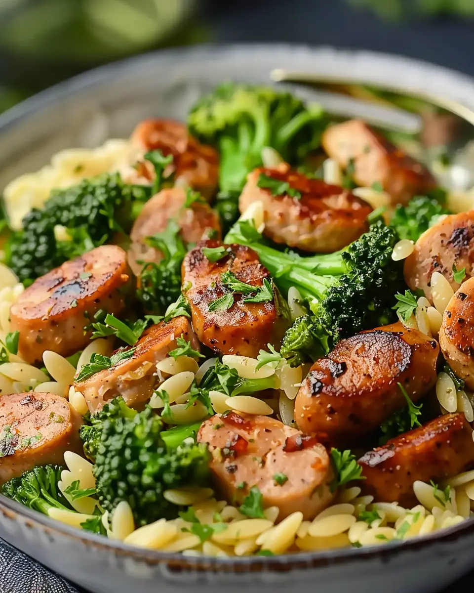 A flavorful and easy-to-make dish featuring chicken sausage and broccoli with orzo pasta.
