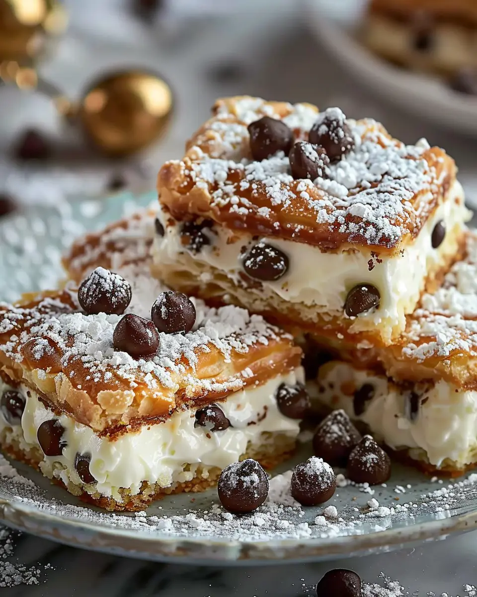 Indulging in chocolate chip cannoli squares is like having the best of both worlds—traditional cannoli meets gooey chocolate bliss! Simply fold miniature chocolate chips into your ricotta fill before spreading it onto the crust. This remix not only adds a rich, chocolaty twist but also gives a delightful textural contrast. Looking for the perfect chocolate chips? Check out resources like Cocoa & Chocolate for high-quality options.