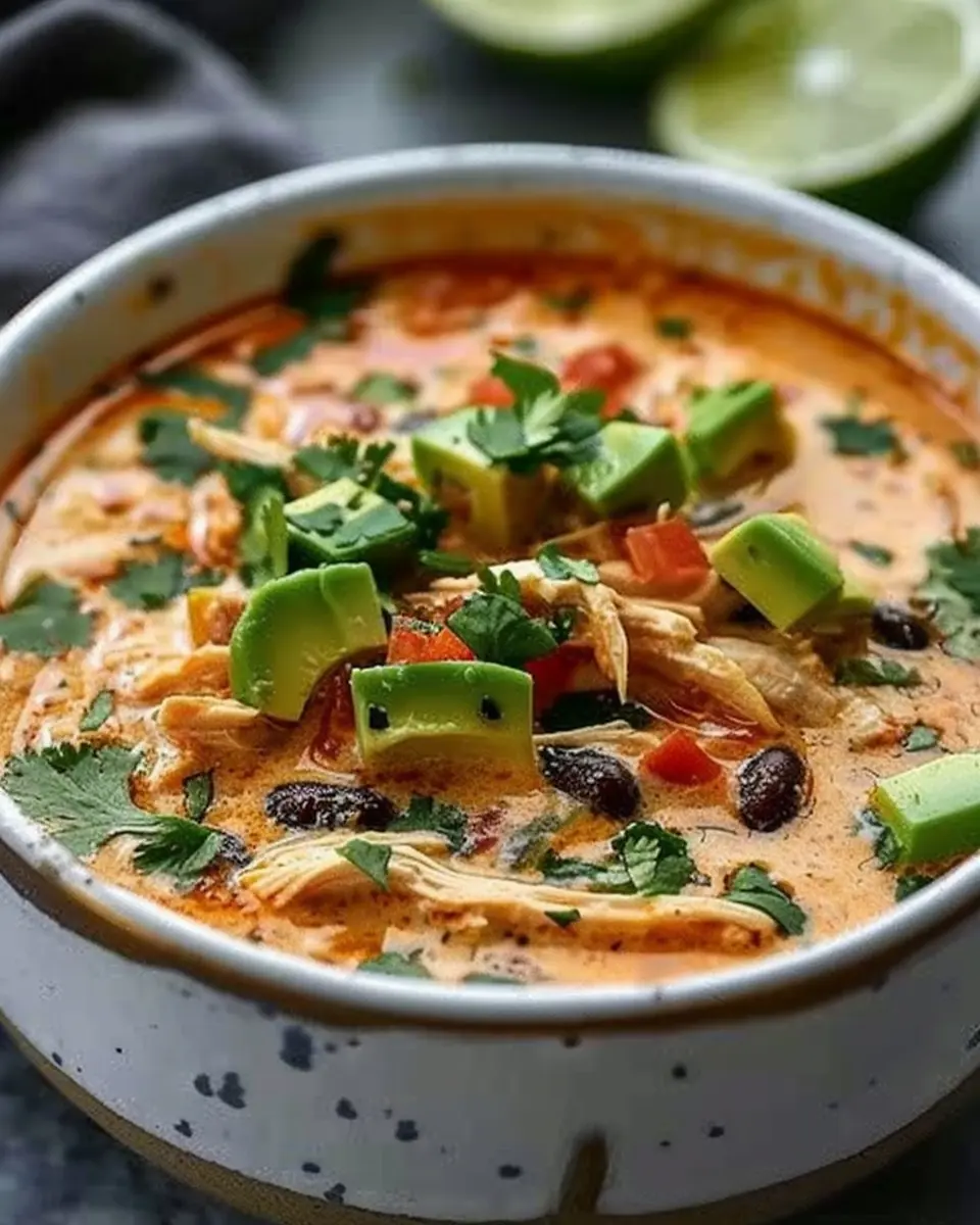 A delicious and comforting creamy chicken enchilada soup perfect for any occasion.
