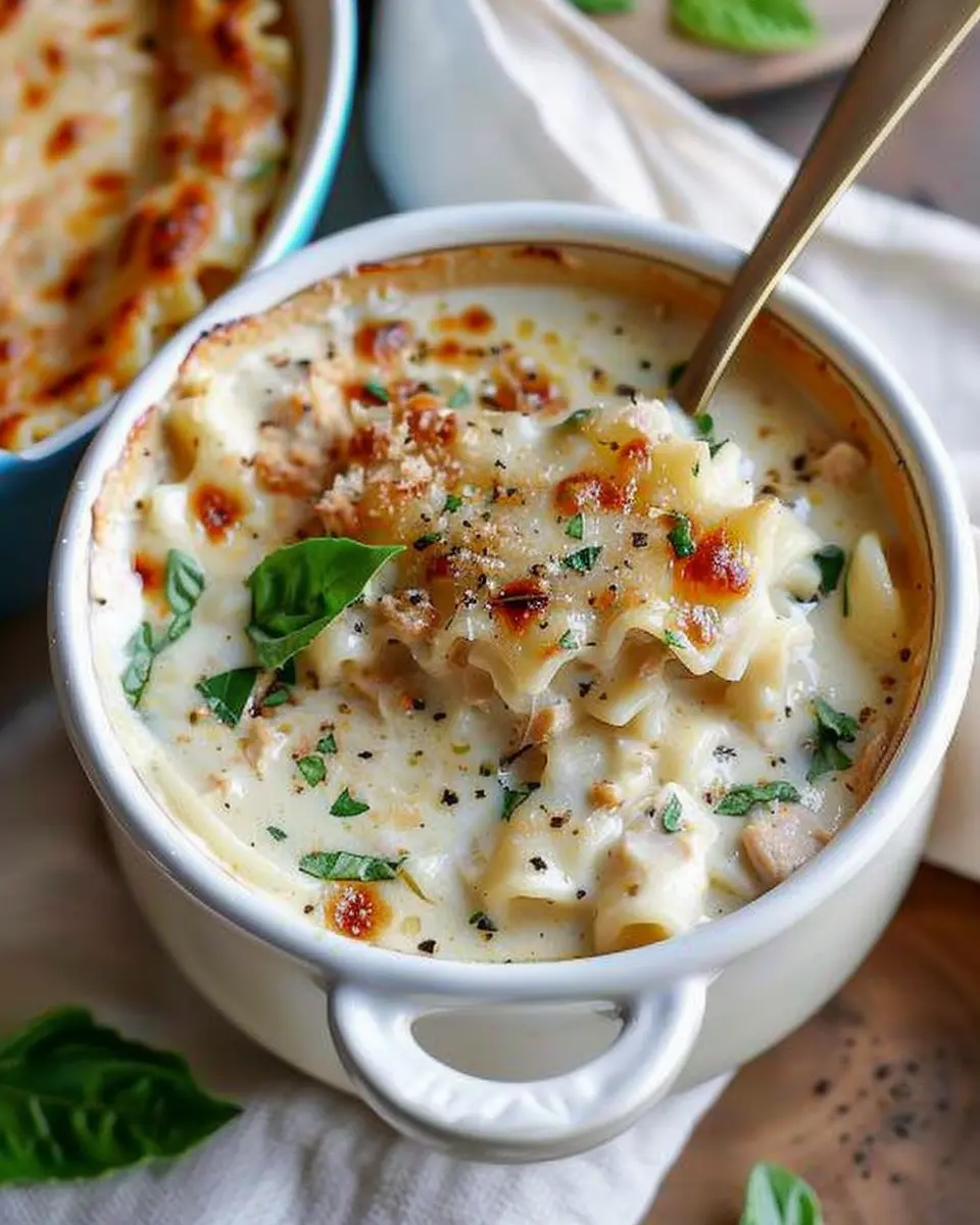 A deliciously creamy and comforting chicken lasagna soup that brings the flavors of classic lasagna into a cozy bowl.
