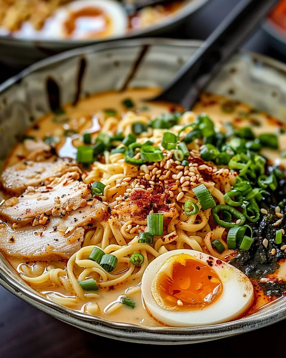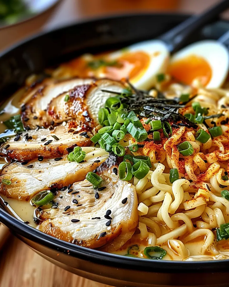 A cozy and indulgent meal, Creamy Garlic Chicken Ramen is perfect for a cold day or when you want something comforting and delicious.