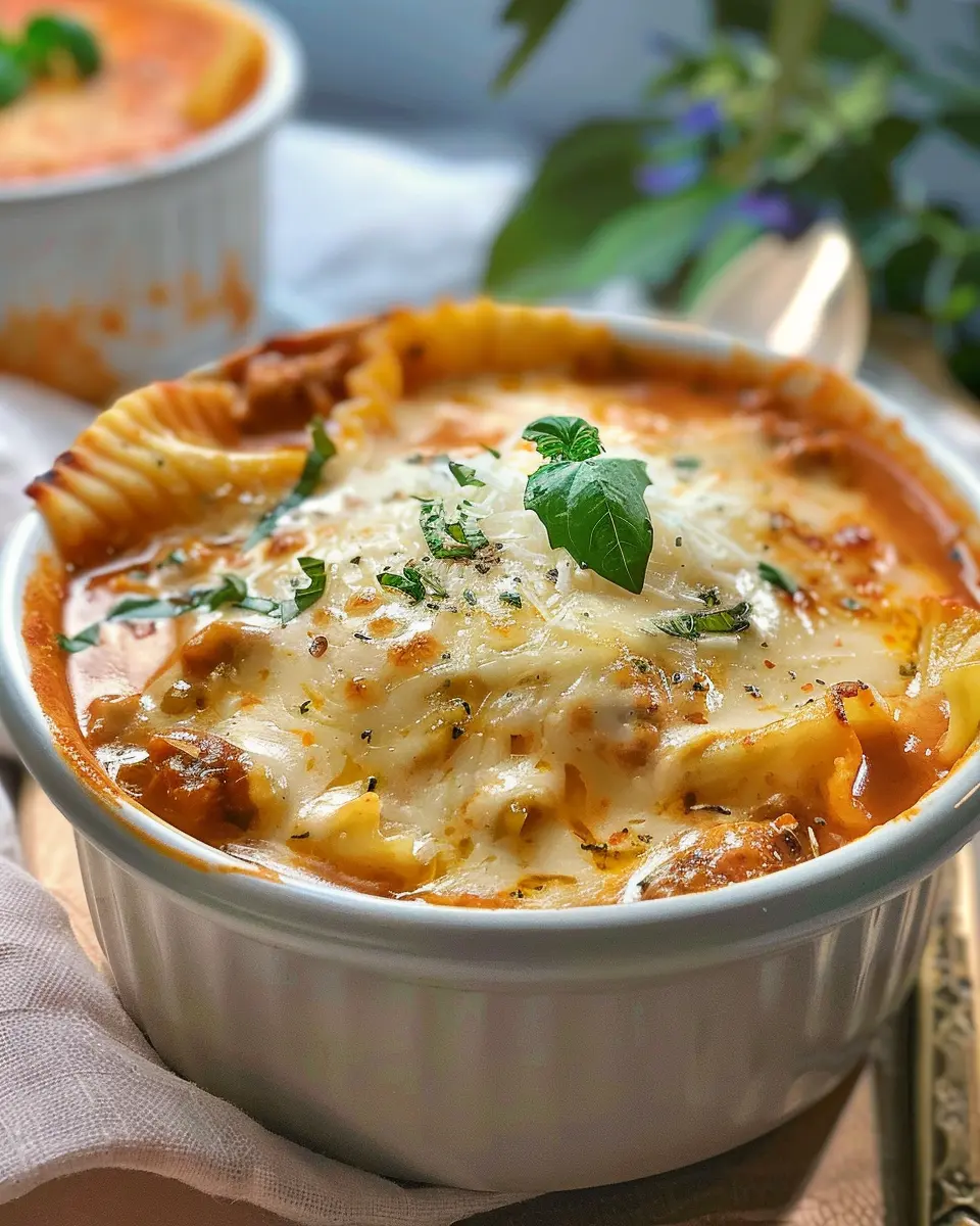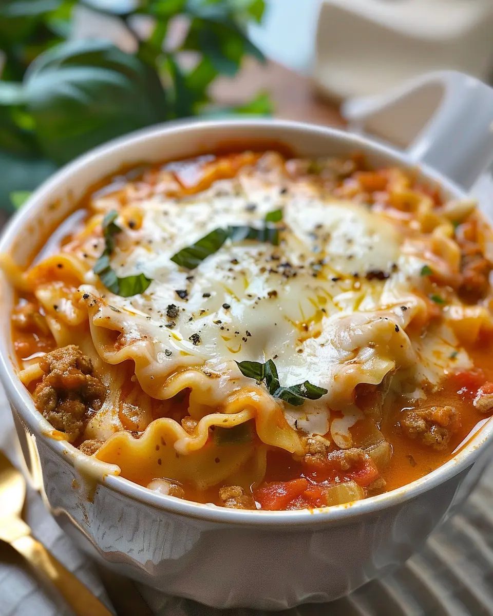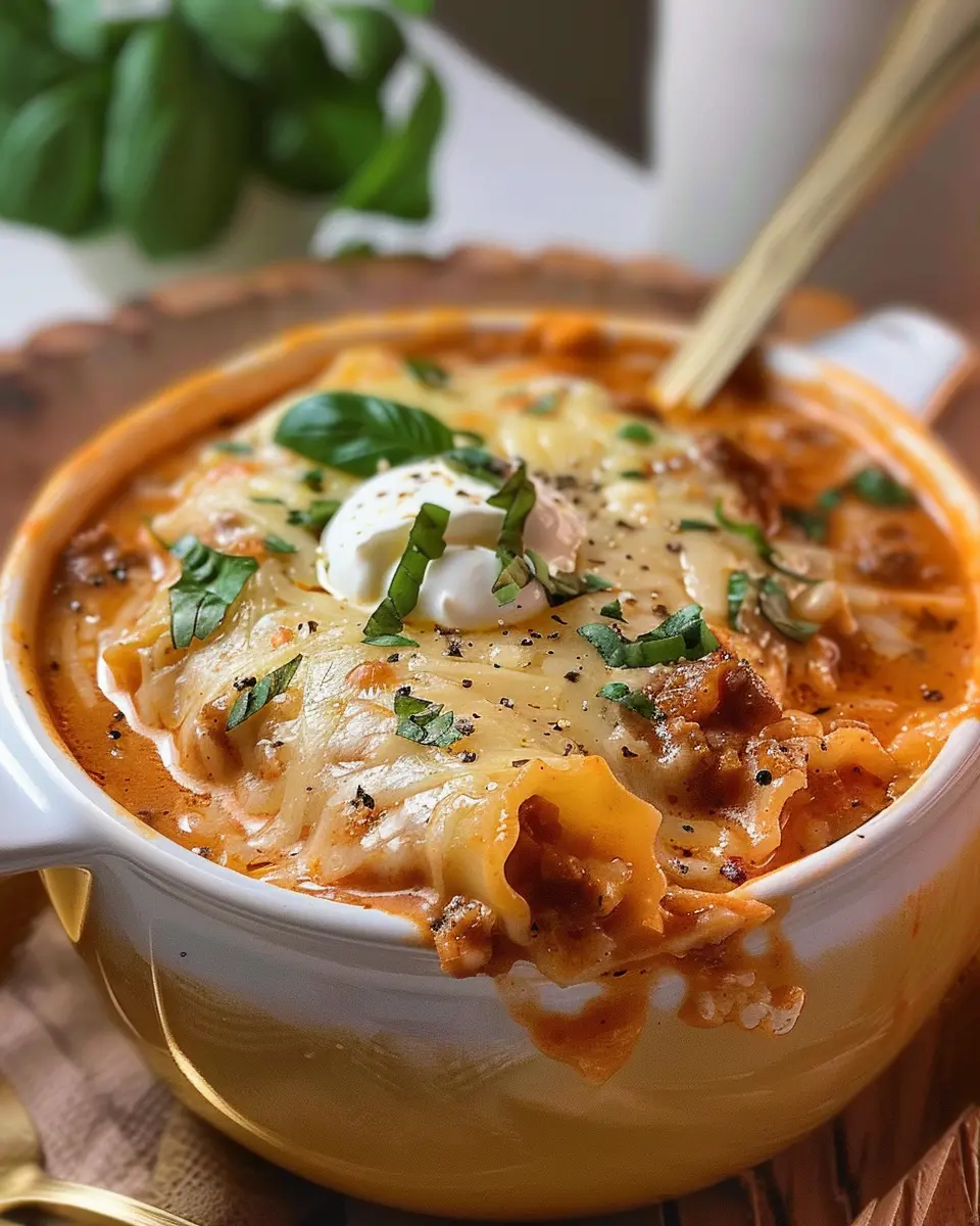 A rich and indulgent soup that combines the flavors of traditional lasagna with the comfort of creamy broth.