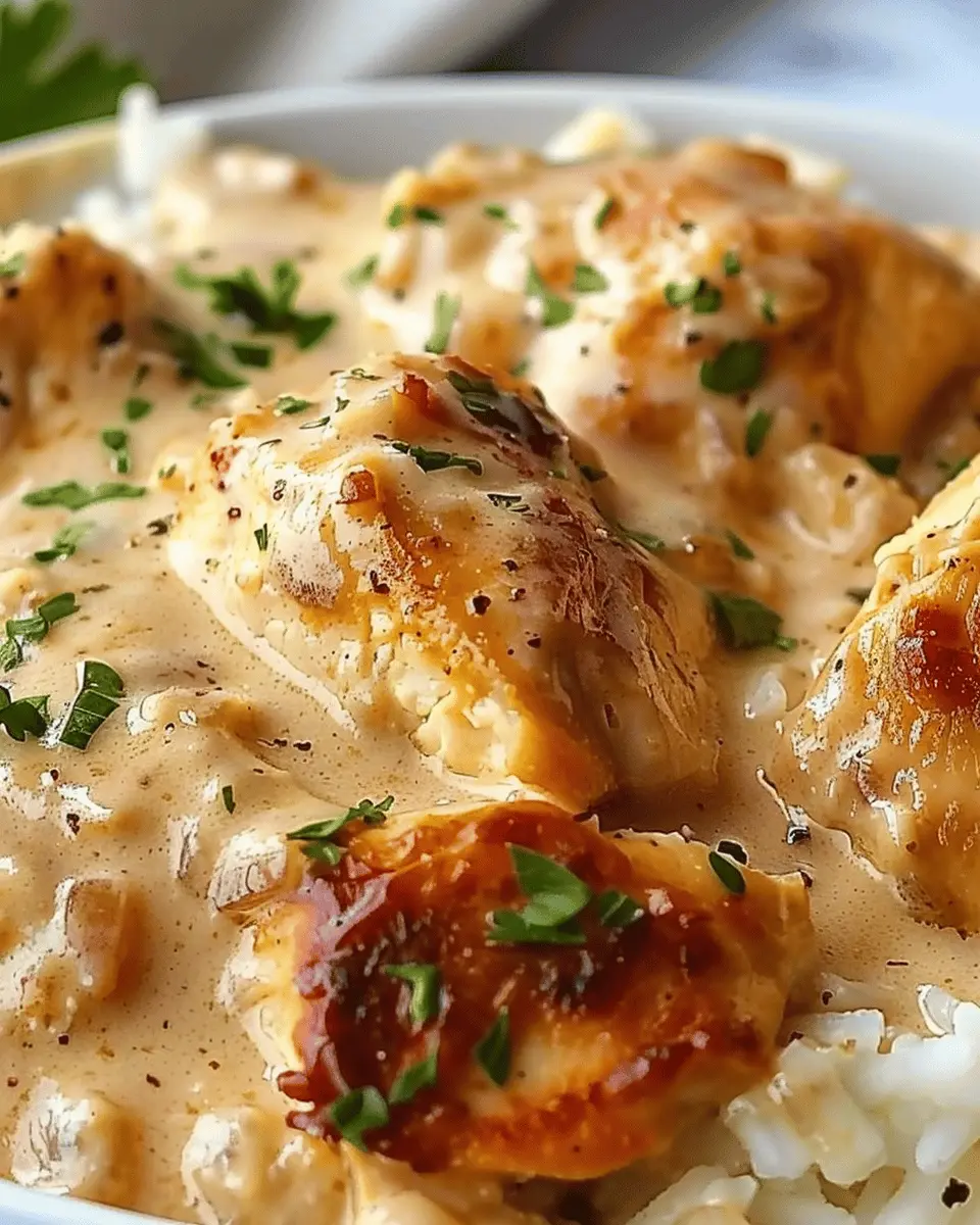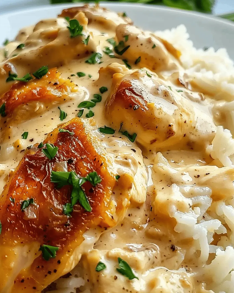 The final touch makes all the difference. While plating your creamy smothered chicken and rice, consider creating a small nest of rice and topping it with the chicken. Drizzle some of that luscious sauce over the top and add a garnish of freshly chopped parsley or chives for a pop of color.