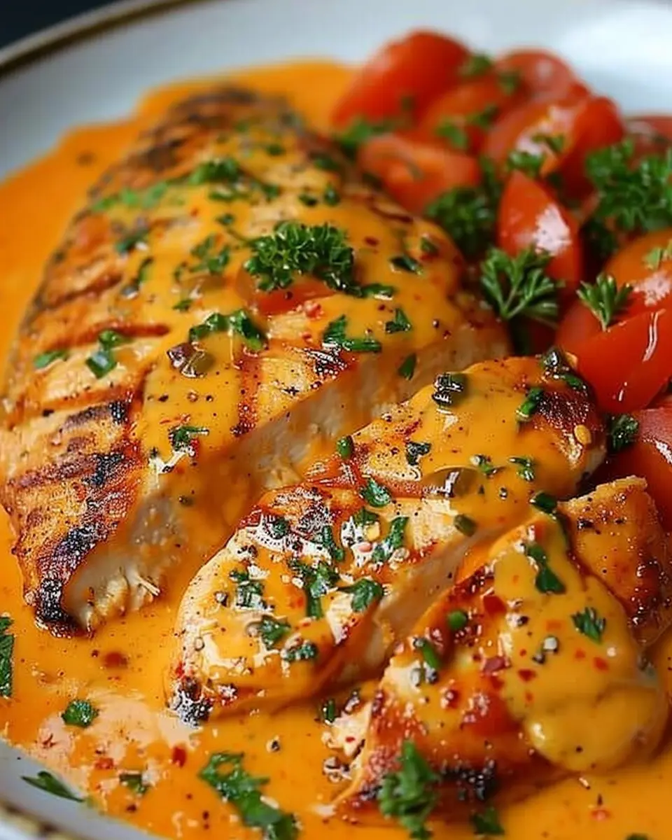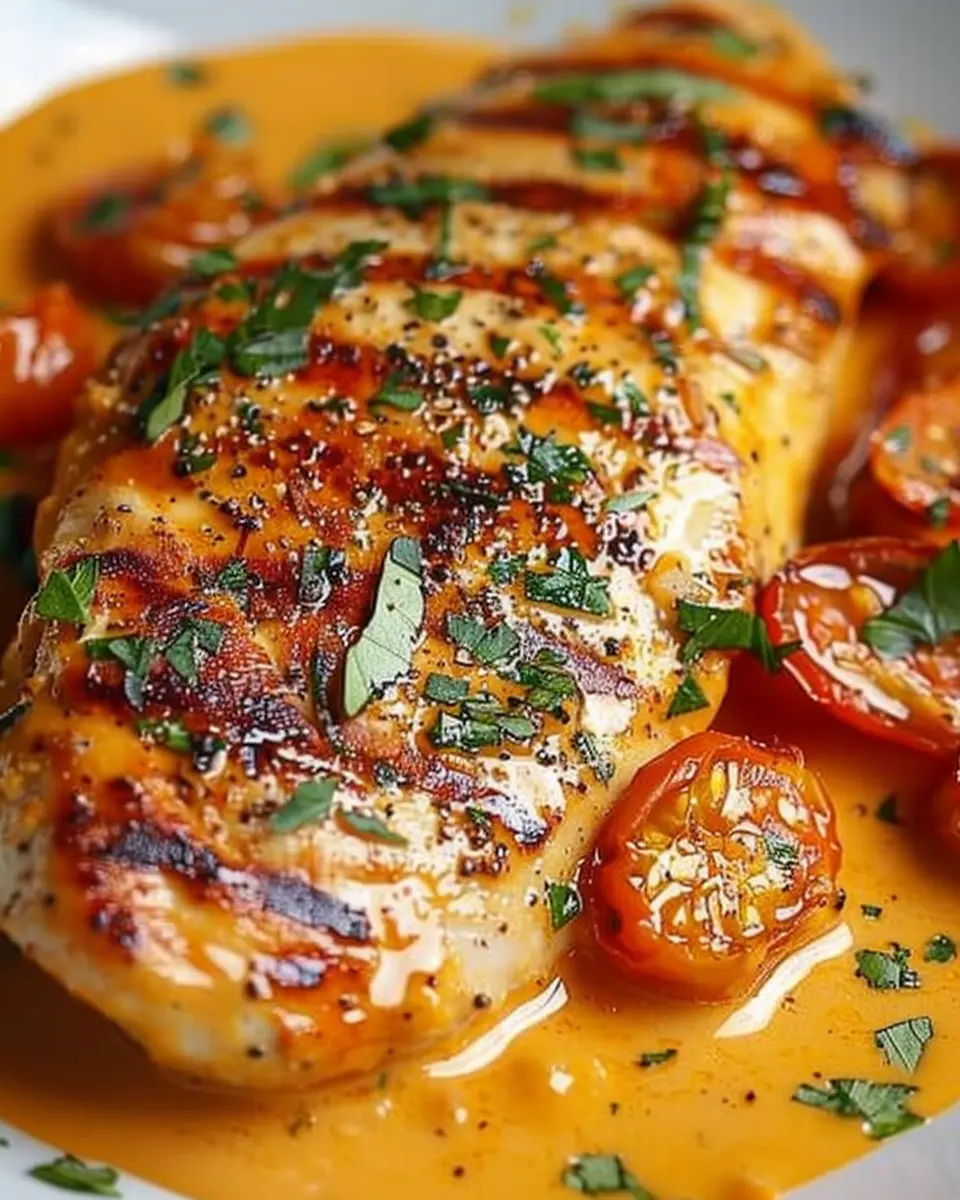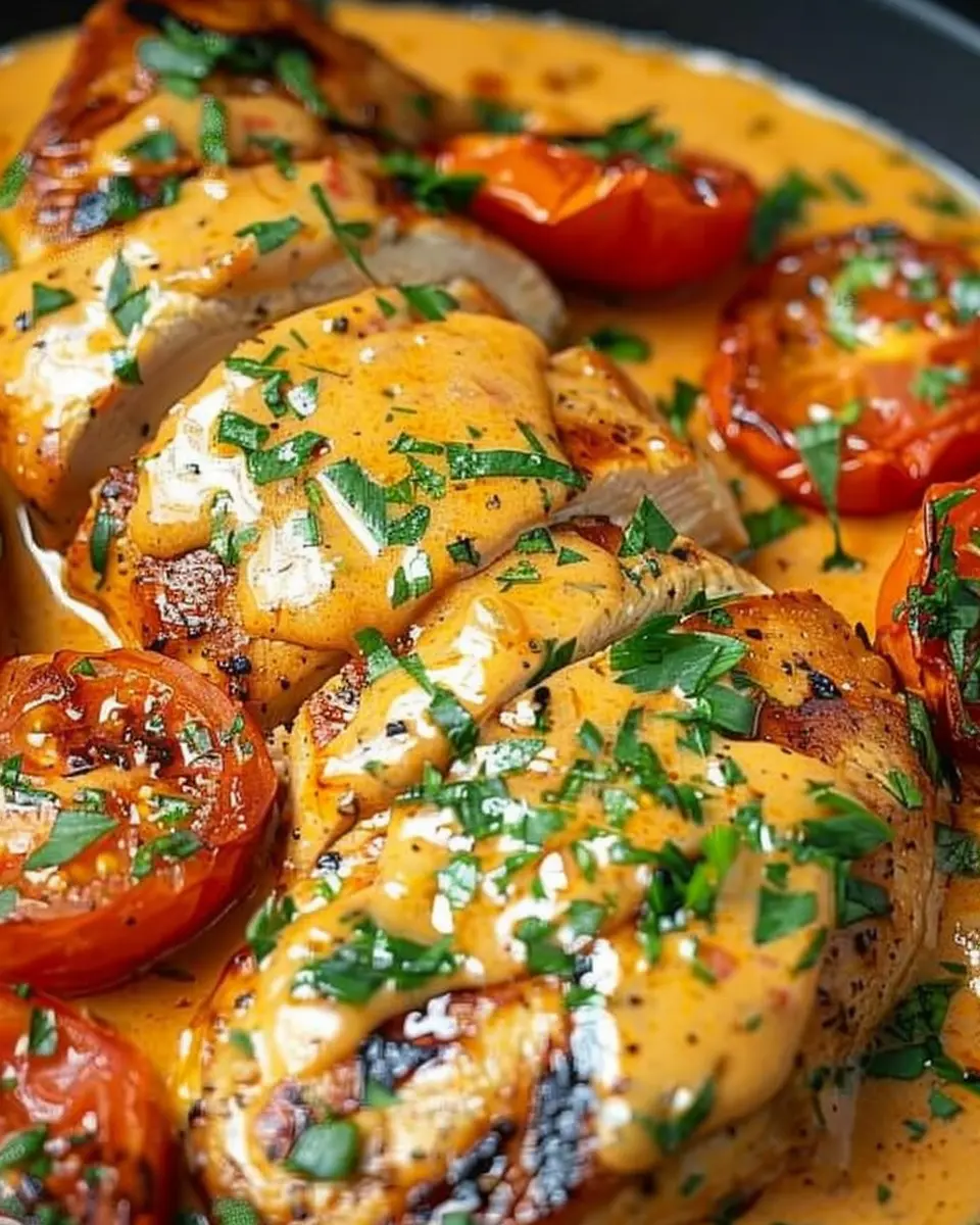 - Spoon the creamy tomato sauce generously over the chicken.