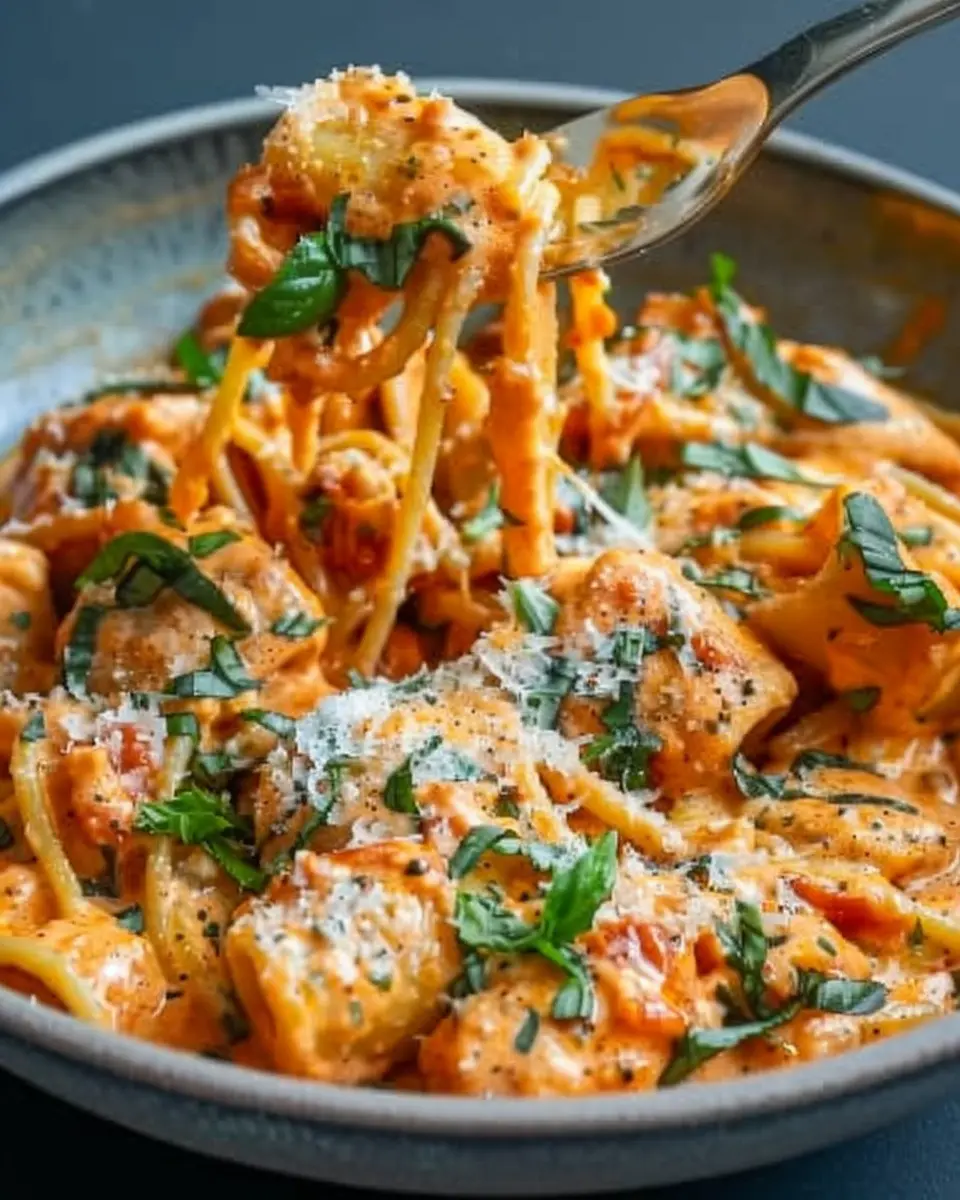 Impressive Presentation: The vibrant colors of the pasta dish make it look as delightful as it tastes, perfect for impressing guests at dinner parties or cozy date nights.