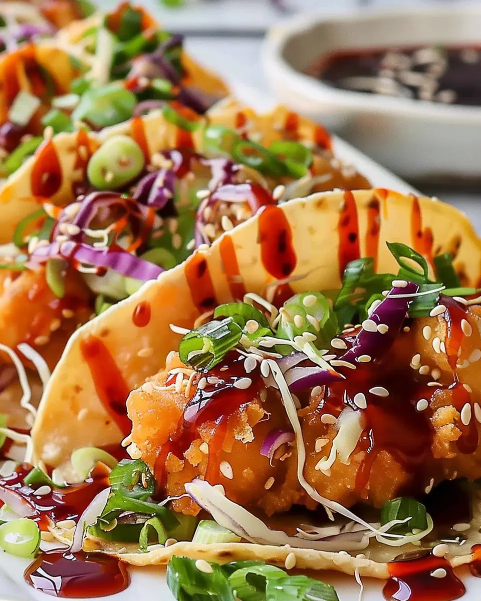 Lastly, let’s assemble your crispy chicken wonton tacos! Take a fried wonton wrapper and fill it with a spoonful of the cooked chicken. Top with a generous helping of coleslaw and, if you’re feeling daring, a drizzle of your favorite sauce, like a spicy mayo or a tangy salsa.
