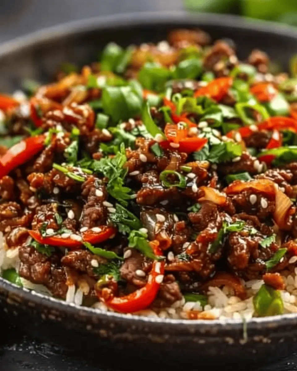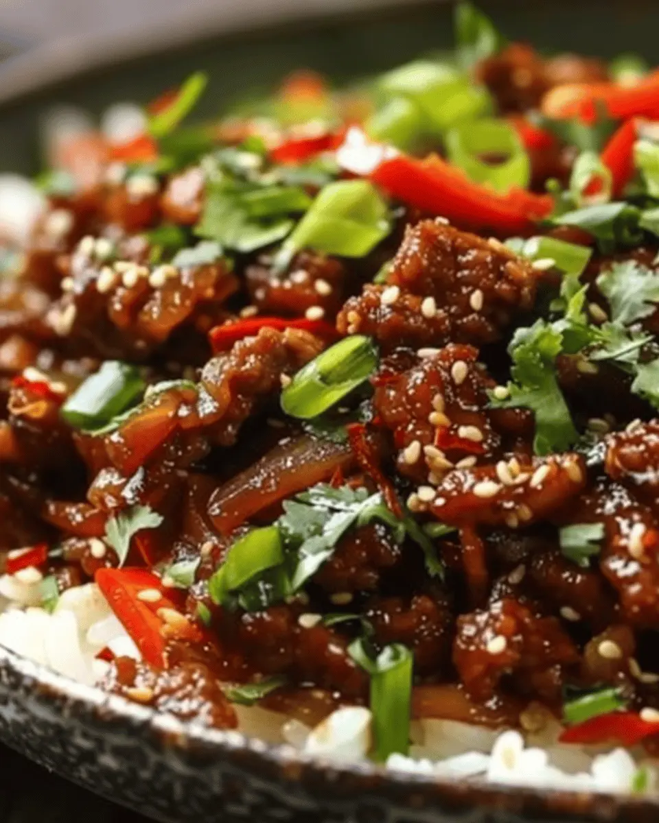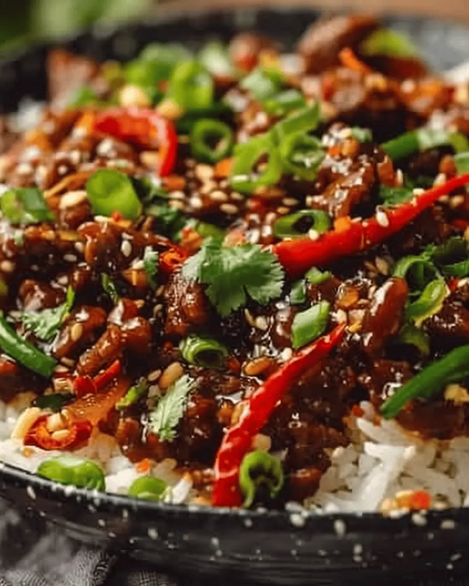 PrintCrispy Chilli Beef Rice: A Flavorful Twist on a Comfort Classic