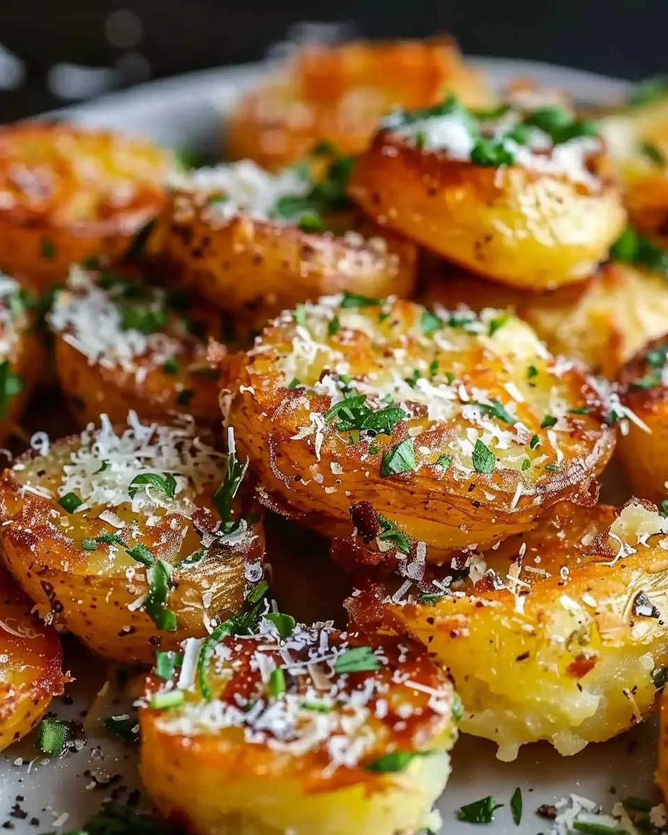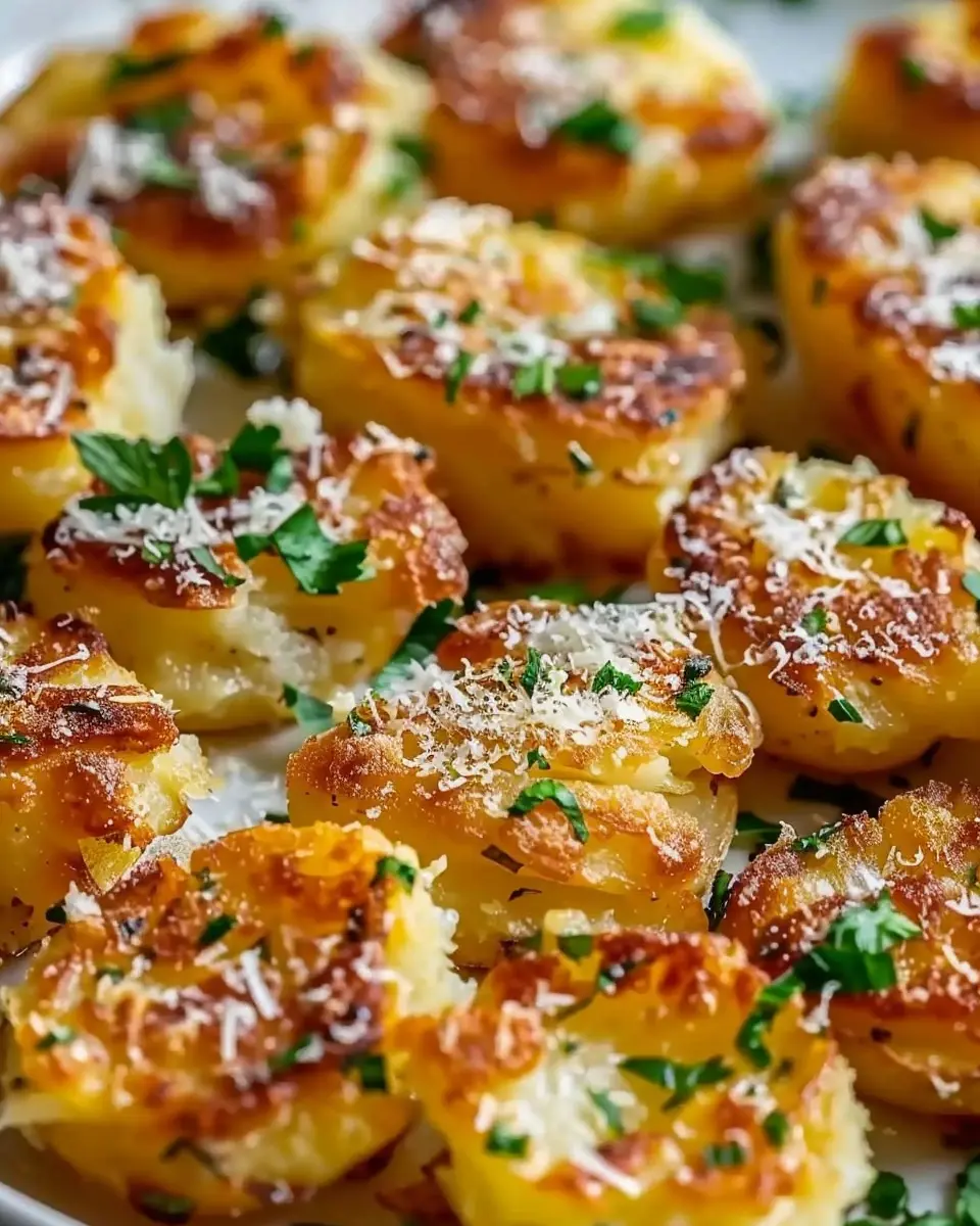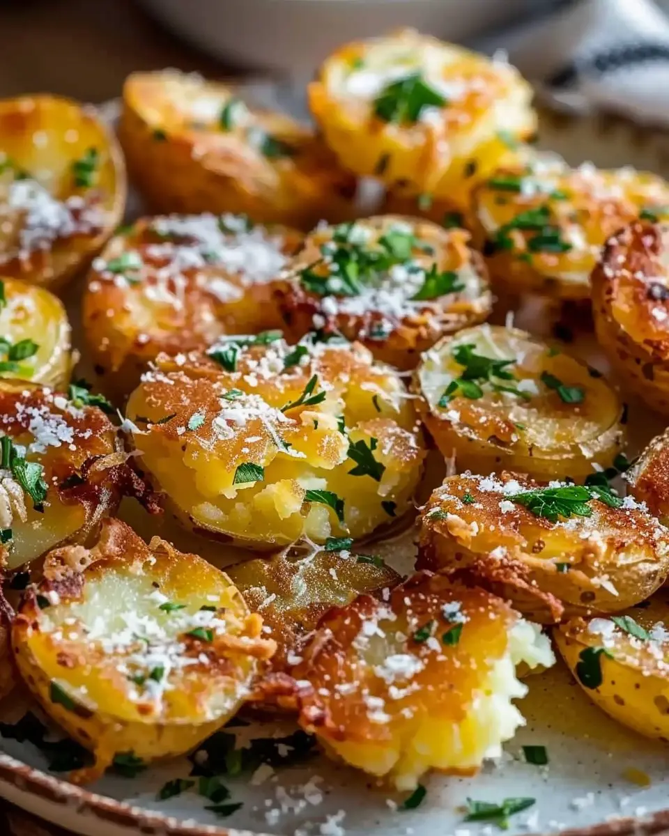 Crispy Garlic Butter Parmesan Smashed Potatoes
