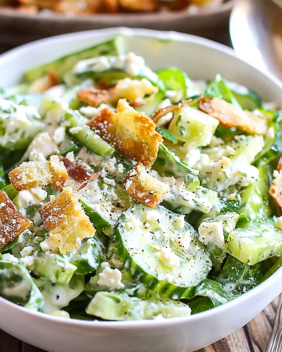 Home » Recipes » Cucumber Caesar Salad with Turkey Bacon: A Fresh Twist on Classic Flavor