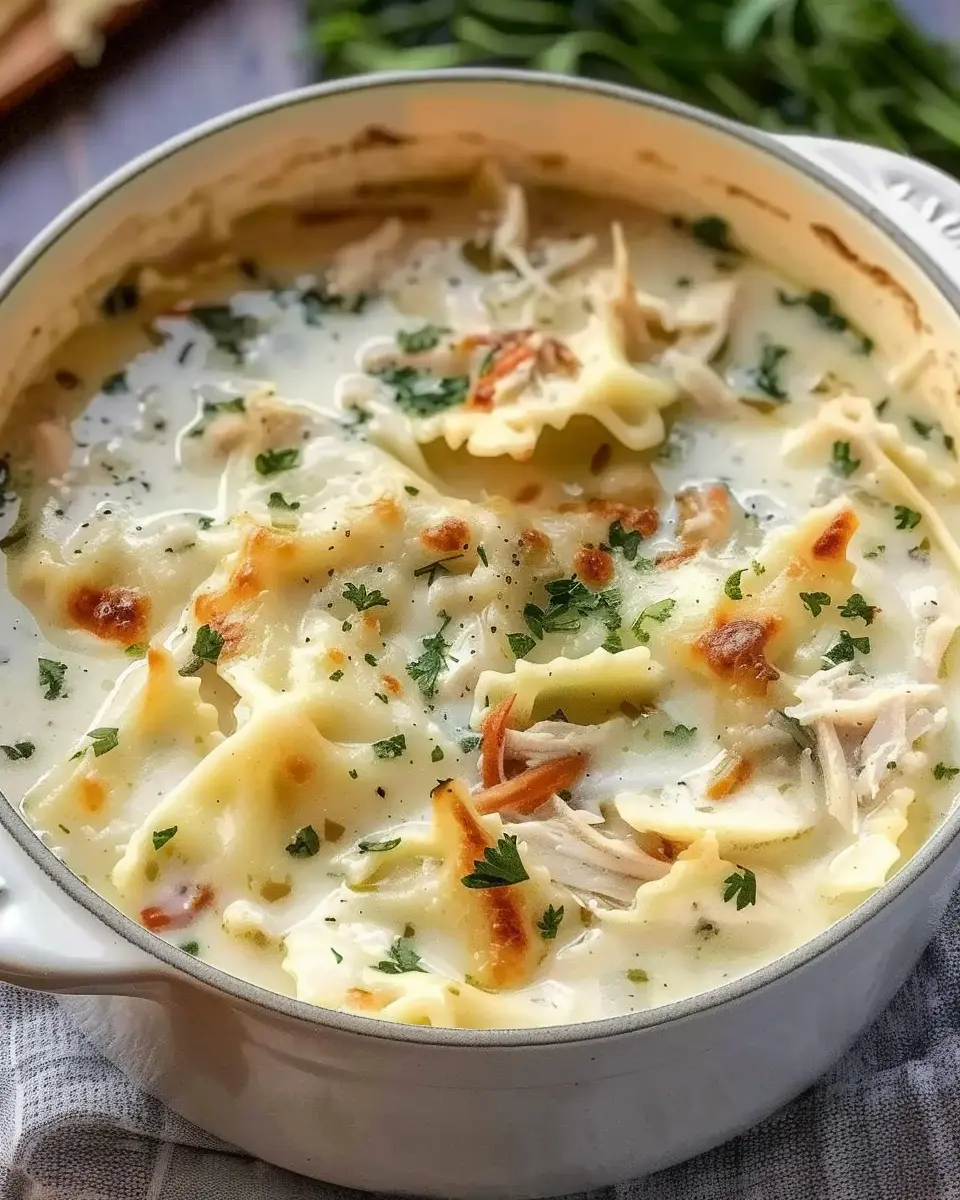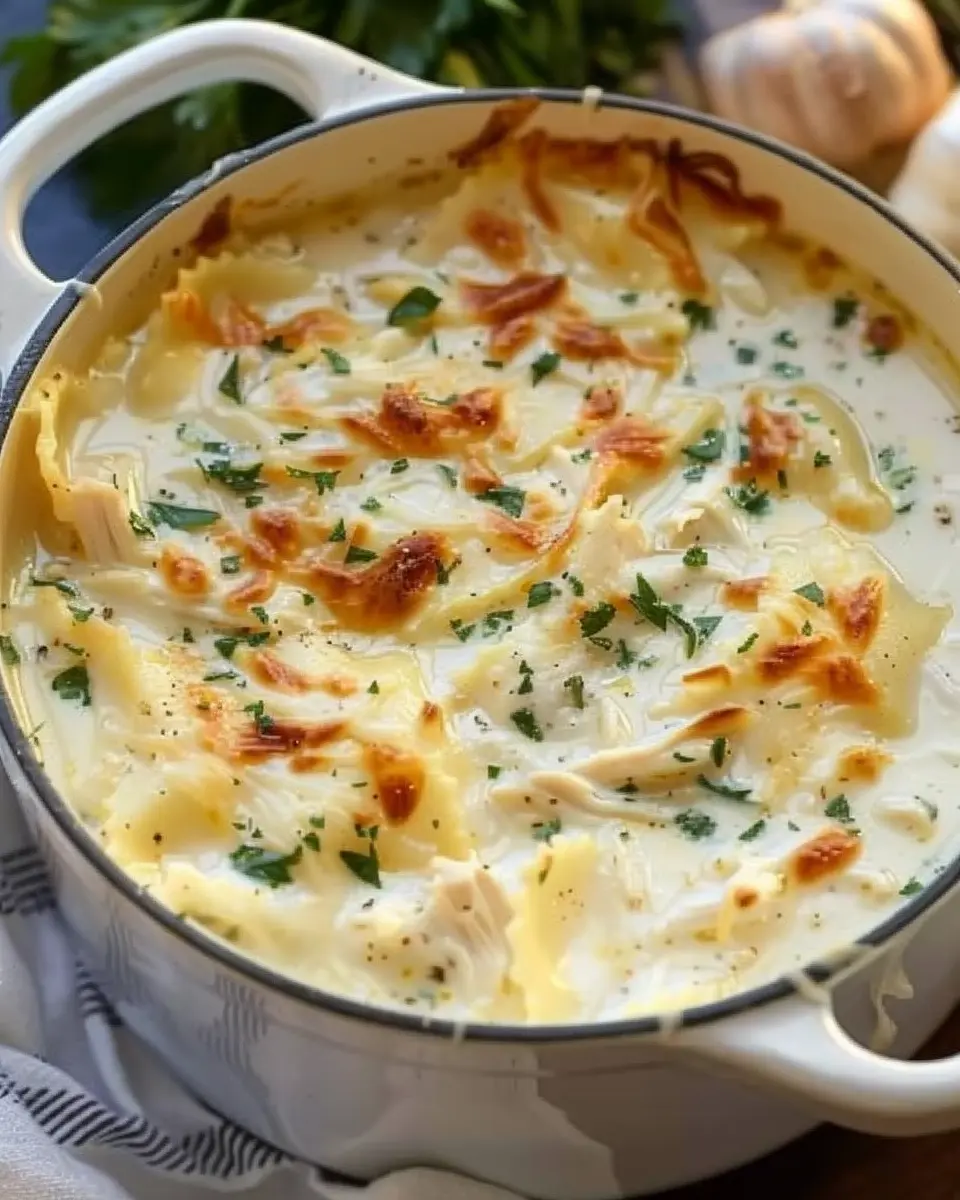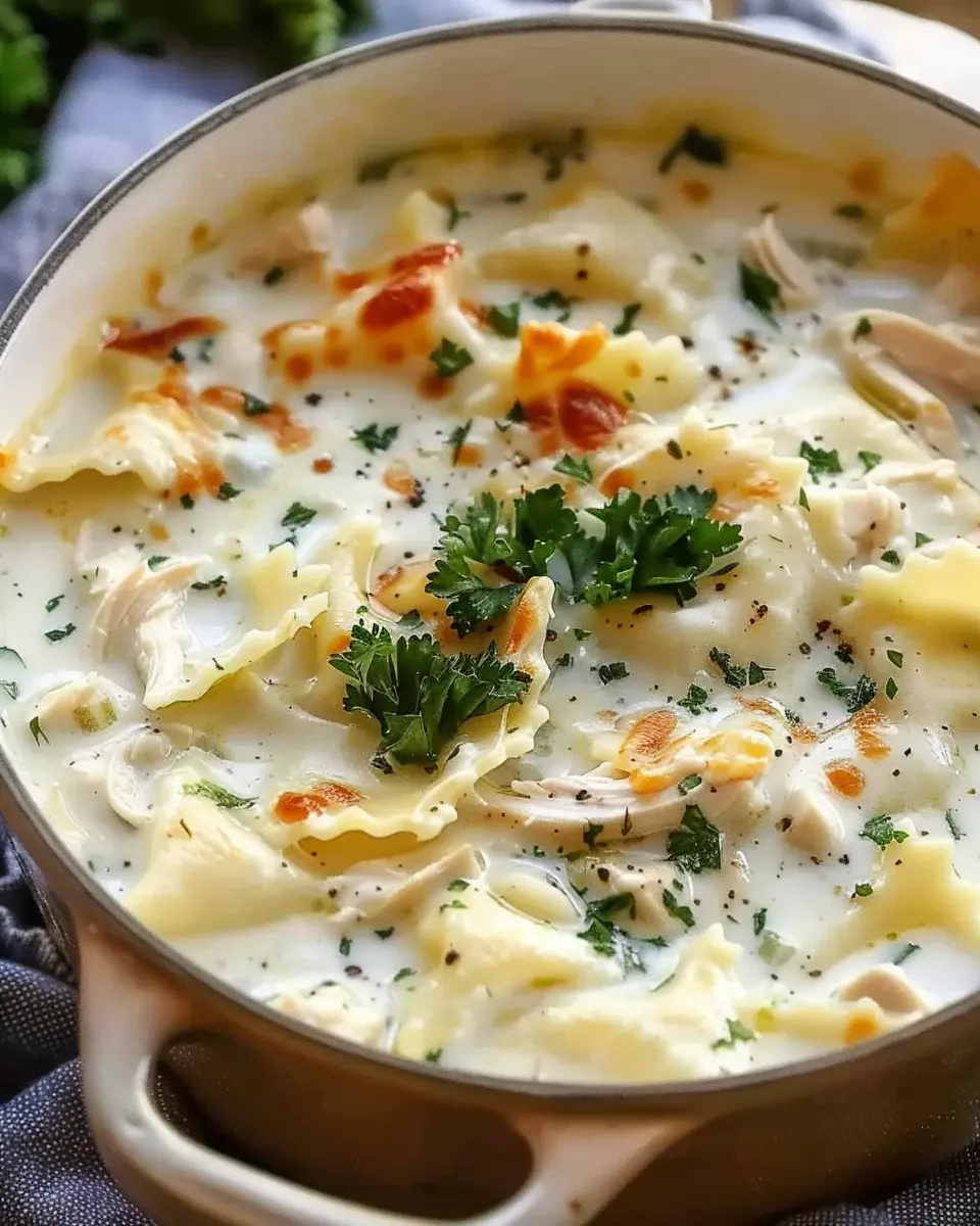 A comforting and delicious soup featuring the flavors of traditional lasagna, made with tender chicken and rich cheese.