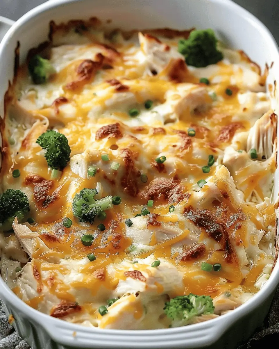 With your oven preheated and your casserole assembled, it’s time to bring it all together. Place your dish in the oven and bake for about 30-35 minutes. You’ll know it’s ready when the cheese is bubbly and golden, and the chicken is heated through. If you want a little extra crunch, you can add a sprinkle of additional cheese for the last 5 minutes!