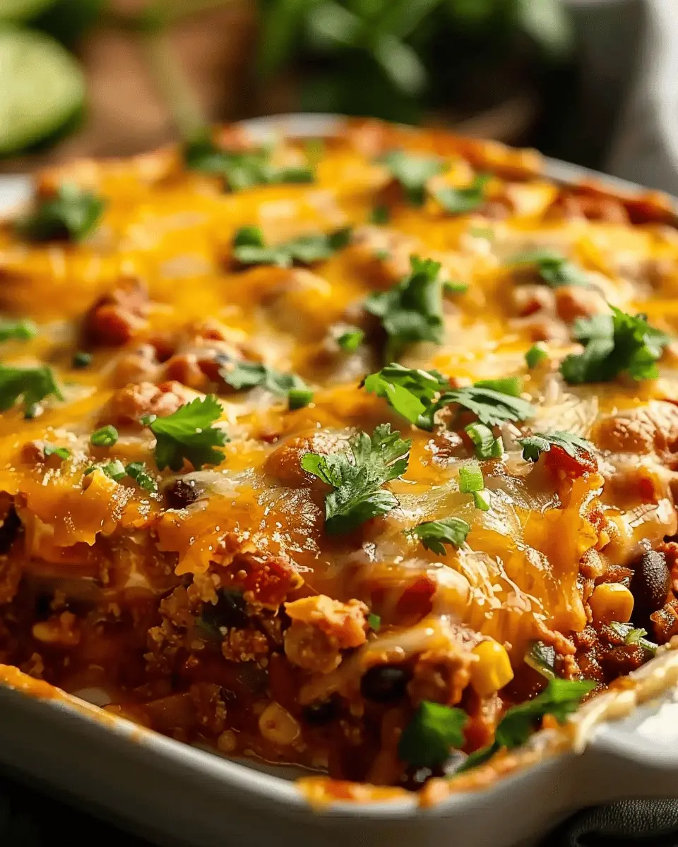 Once everything is set, it’s time for the oven magic. Bake your casserole for 30–35 minutes until bubbly and golden. This is the moment where your kitchen starts to fill with that delicious taco aroma—who can resist that?