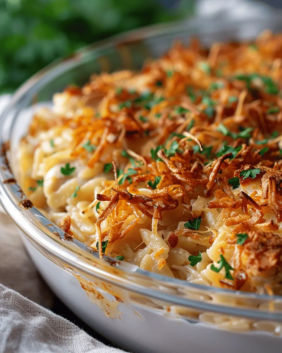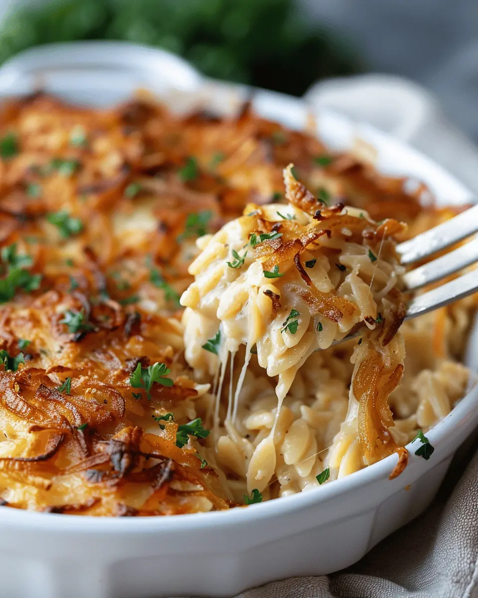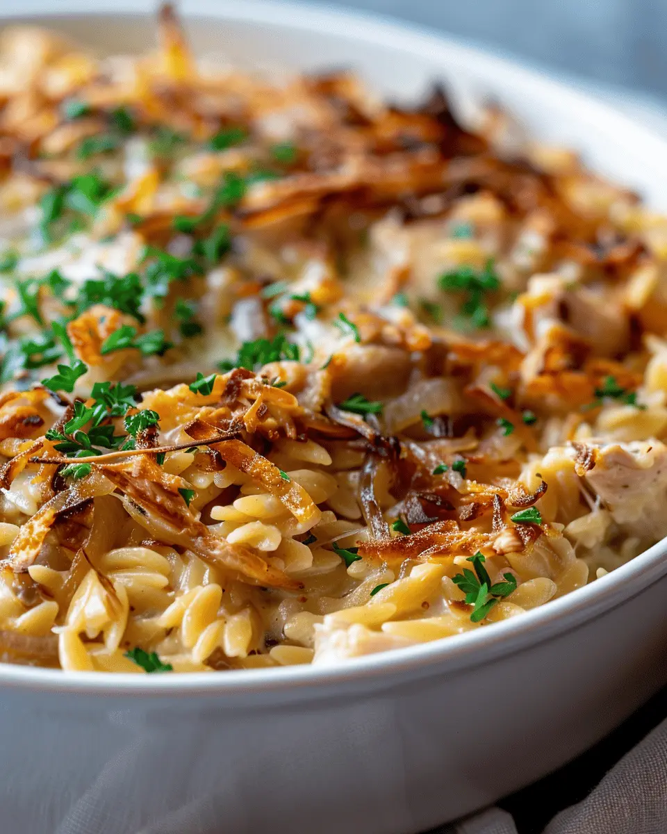 PrintFrench Onion Chicken Orzo Casserole: A Cozy Comfort Dish