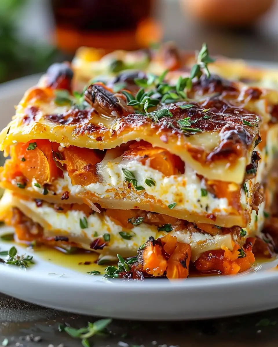 Keywords: Layered Sweet Potato Butternut Squash Carrot Lasagna