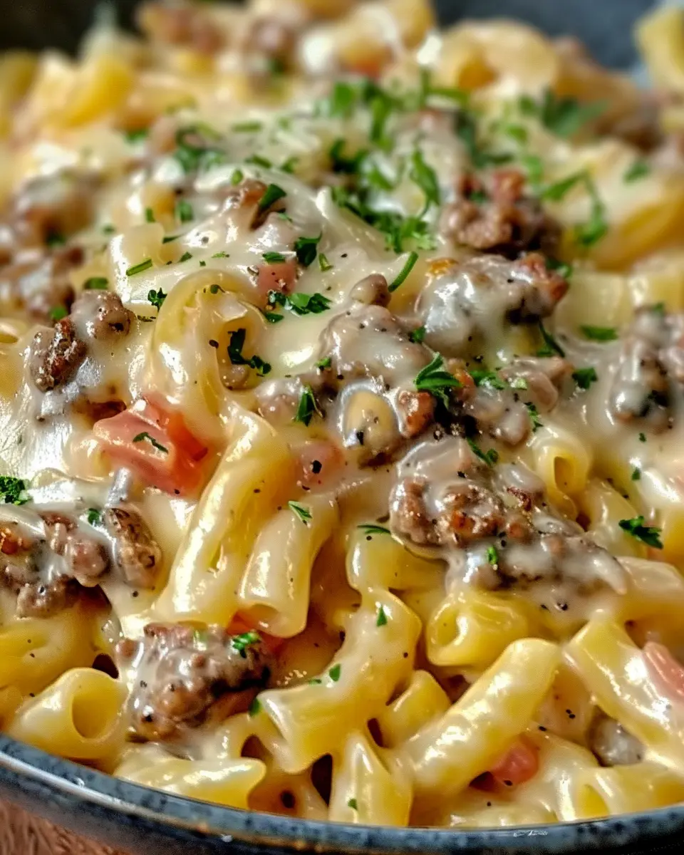 Home » Recipes » Loaded Cheeseburger Alfredo Pasta: Easy Indulgence for Weeknight Dinners