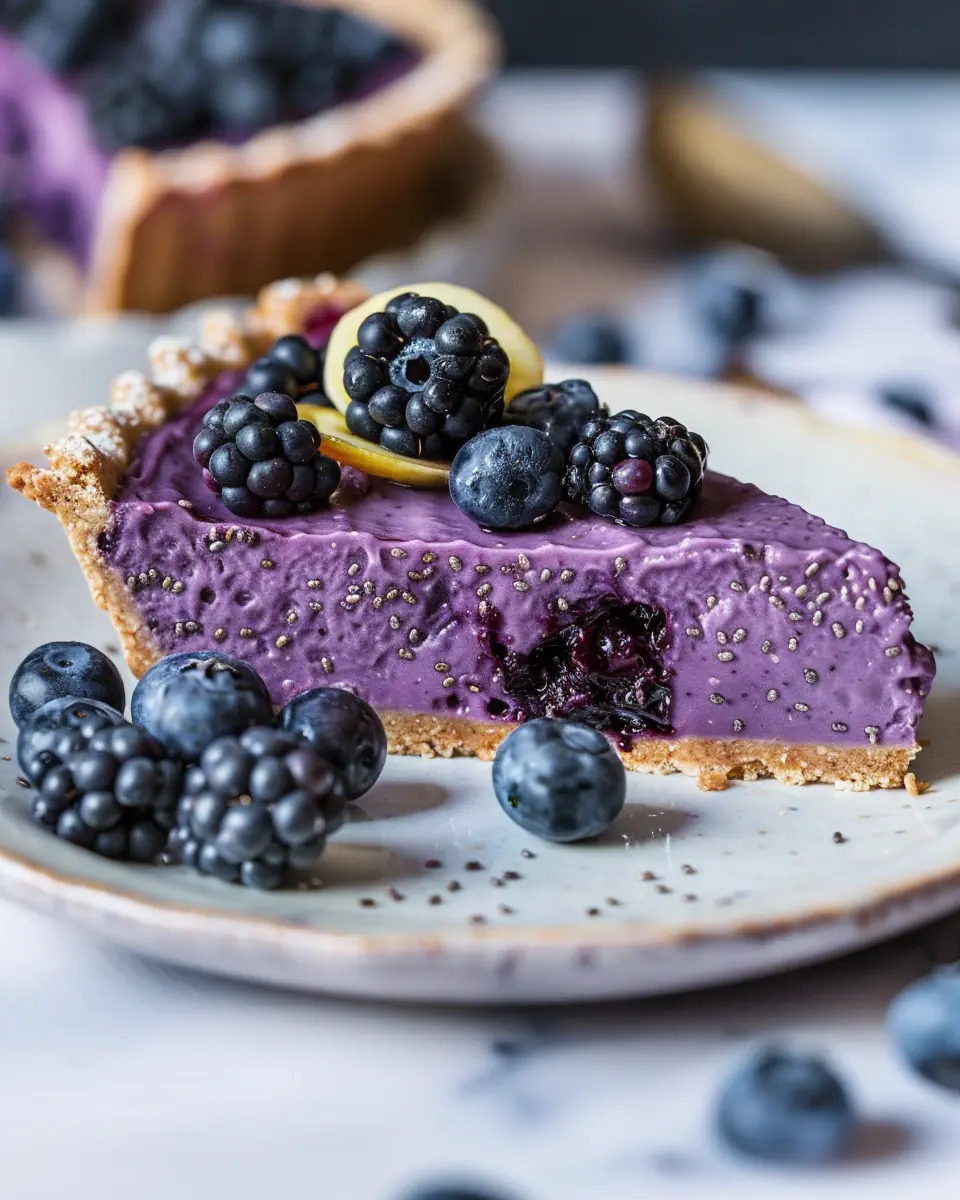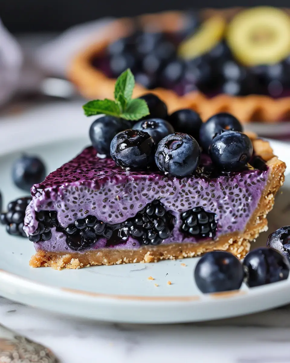 This pie brings a powerhouse of nutrients to your plate. Blueberries are rich in antioxidants, which support heart health, while chia seeds are loaded with omega-3 fatty acids and fiber, promoting digestion and satiety. Together, they create a dessert that’s not just tasty but also packed with health benefits. You can read more about the health benefits of chia seeds here.