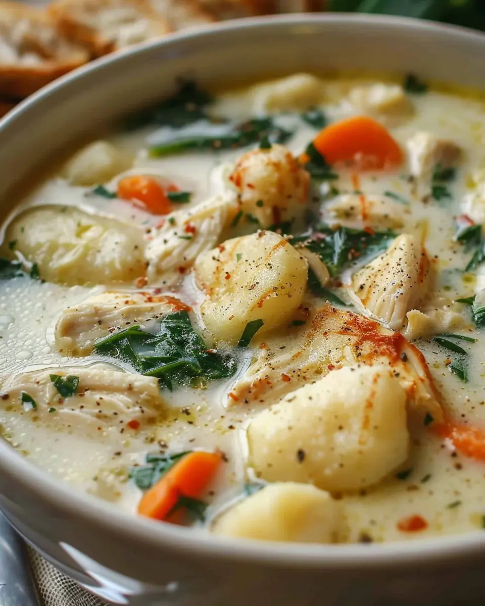 First and foremost, the combination of flavors and textures is truly unique. The soft, pillowy gnocchi—made from potatoes—pairs beautifully with tender pieces of chicken and vibrant, fresh vegetables like spinach and carrots. This harmonious blend does a fantastic job of warming your heart and filling your stomach. You can’t help but feel a hug in a bowl every time you enjoy a spoonful.