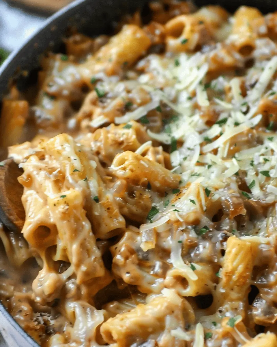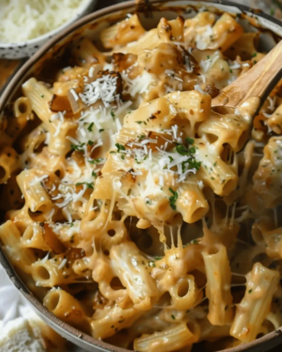 One Pot French Onion Pasta with Turkey Bacon: Easy & Delicious