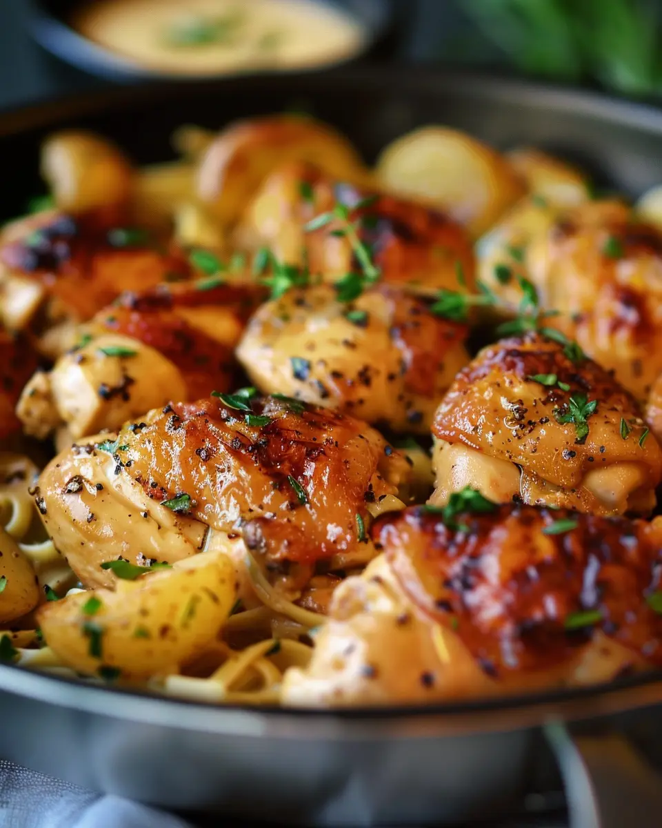 Enjoy this easy and delightful one-pan chicken meal for a cozy evening at home or impressing your friends when they come over. Happy cooking!