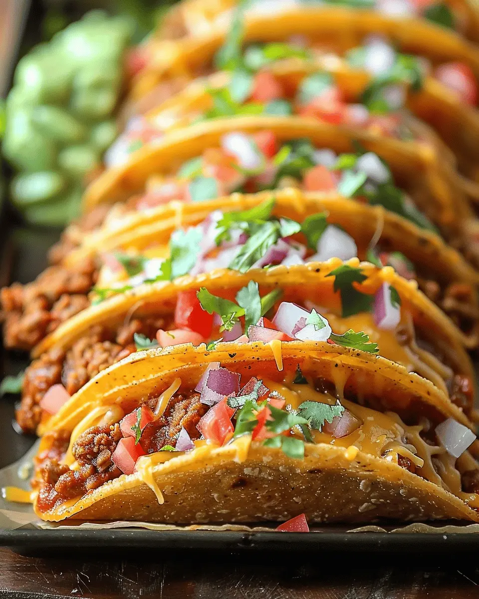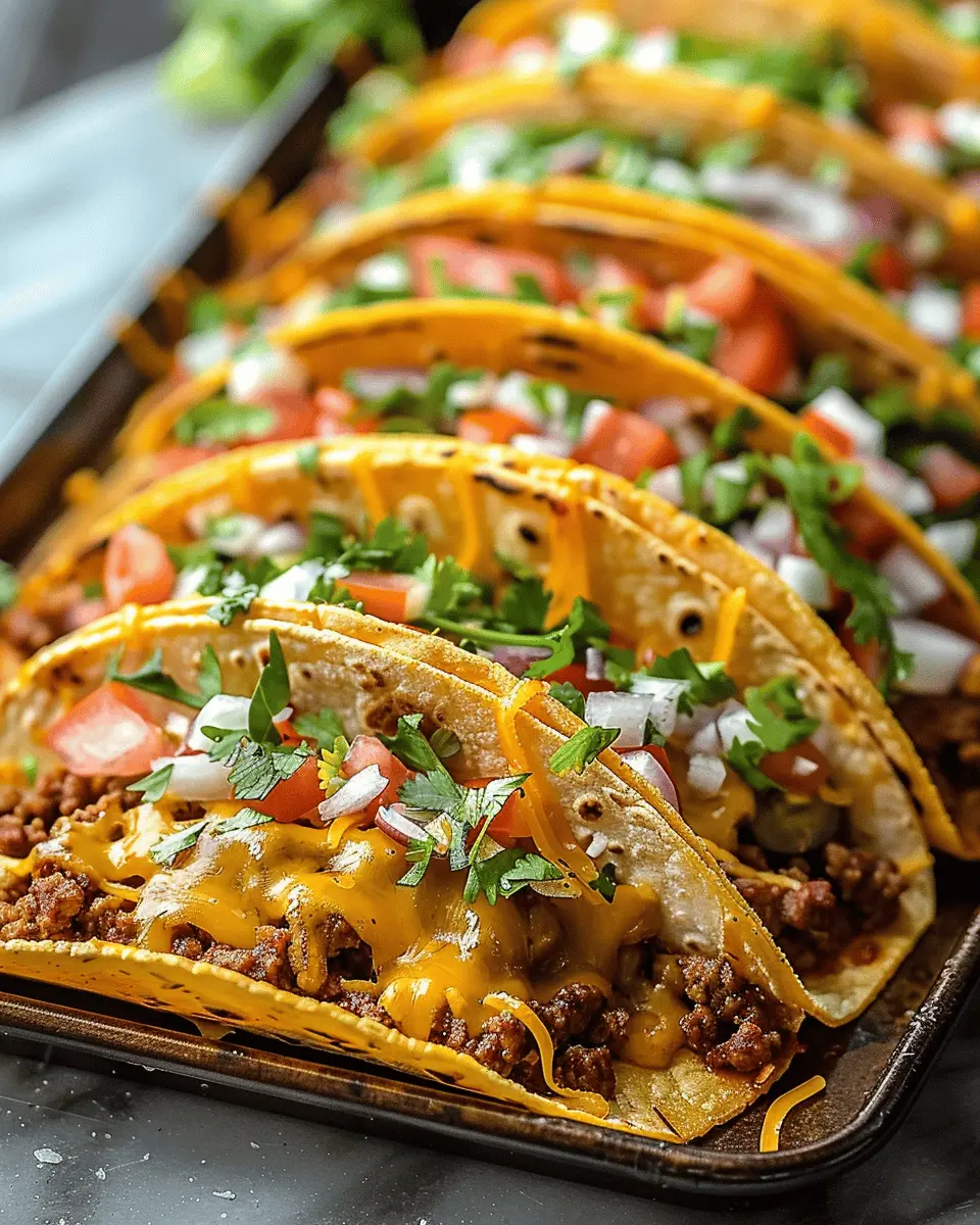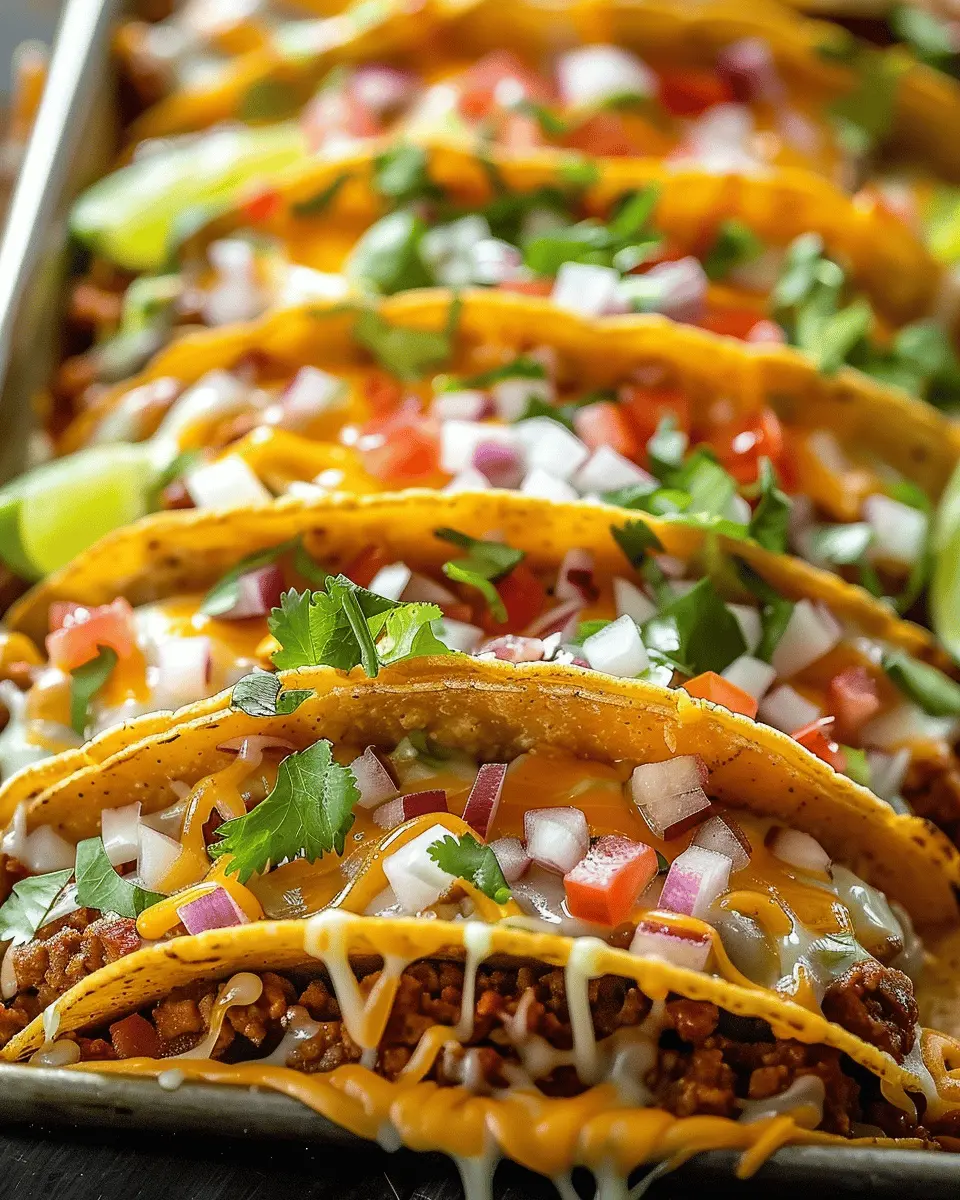 Enjoy these delicious oven-baked cheesy tacos, a perfect family meal that combines ease and flavor.