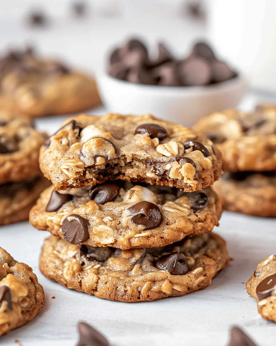 A delicious and healthy treat that combines the richness of peanut butter with the wholesome goodness of oats and the sweetness of chocolate chips.