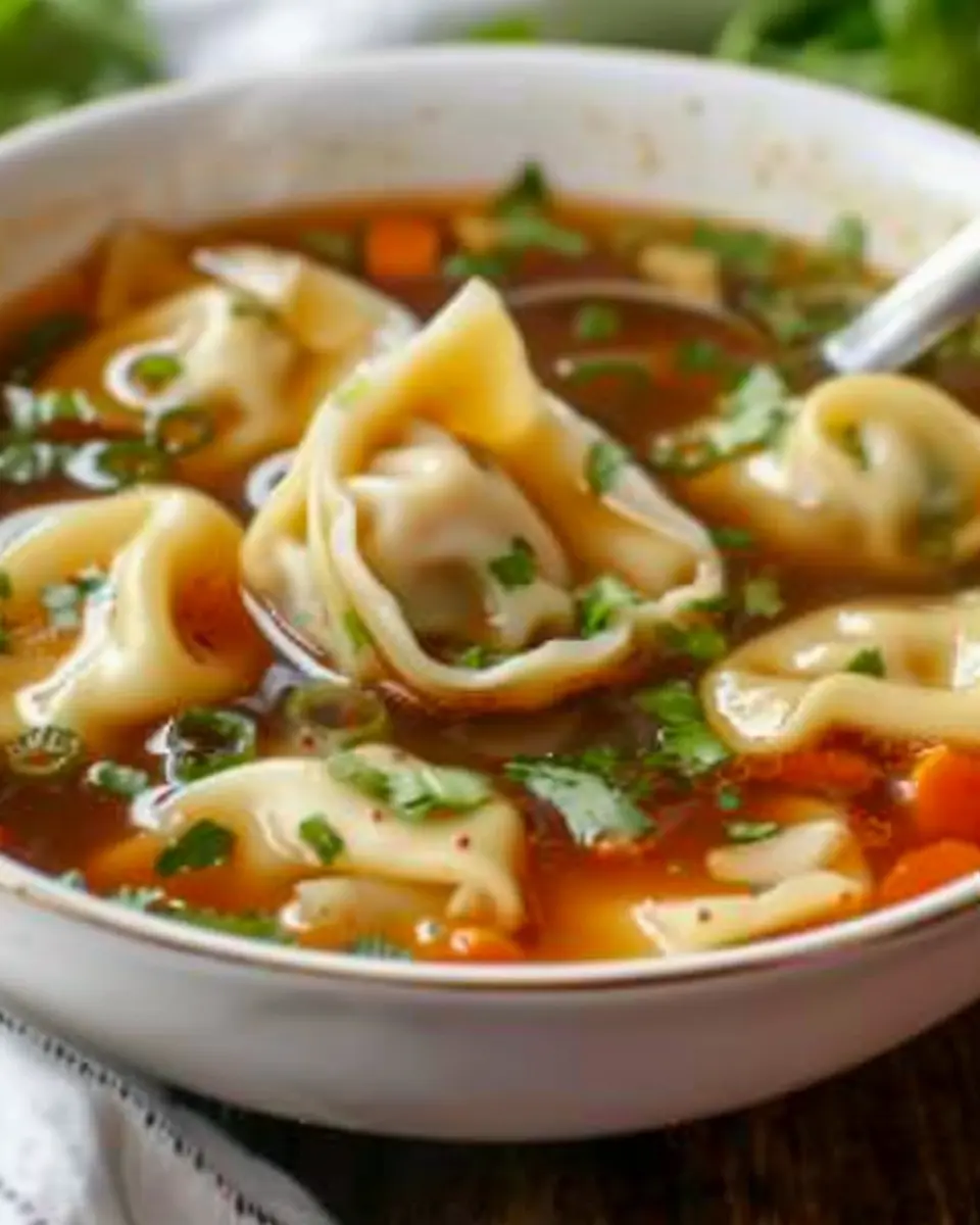 Keywords: Potsticker Soup, Comfort Food, Turkey Bacon, Chicken Ham