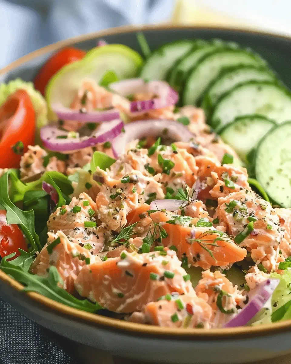 Including salmon salad in your weekly meal rotation isn’t just about enjoying a delicious dish; it’s also a smart choice for a healthy lifestyle. Did you know that salmon is packed with omega-3 fatty acids, which are essential for heart health? Regular consumption can help reduce the risk of cardiovascular diseases, making this salad not only tasty but also beneficial for your well-being.