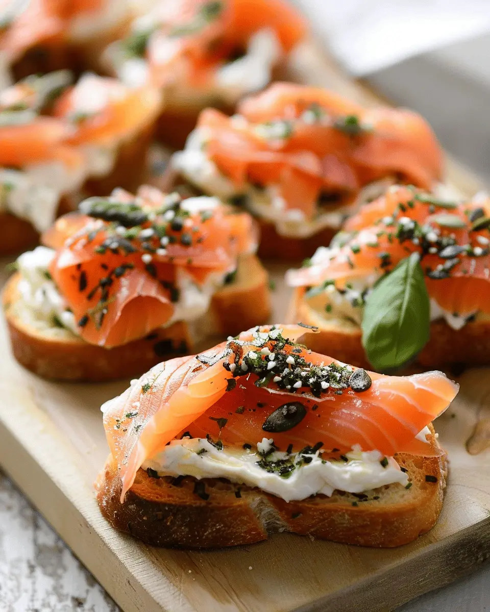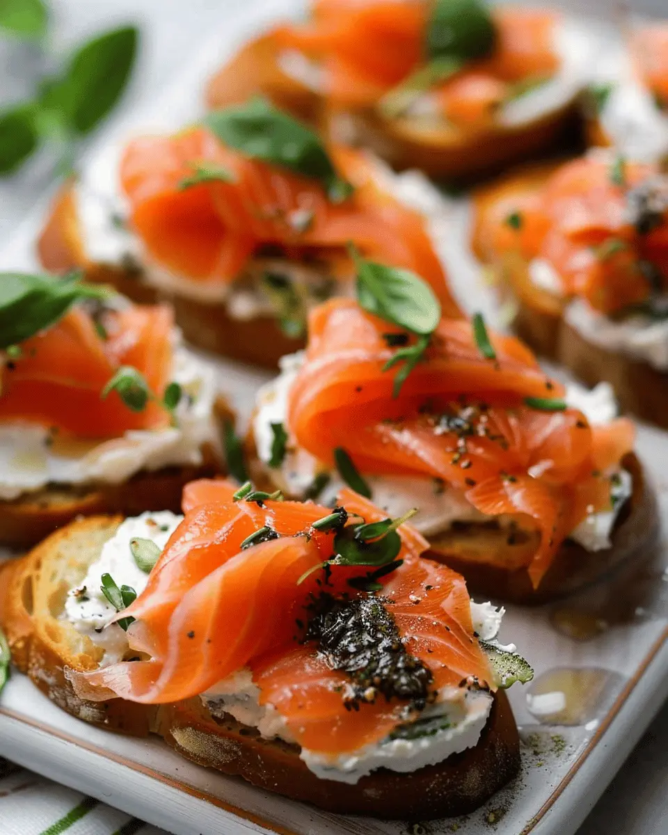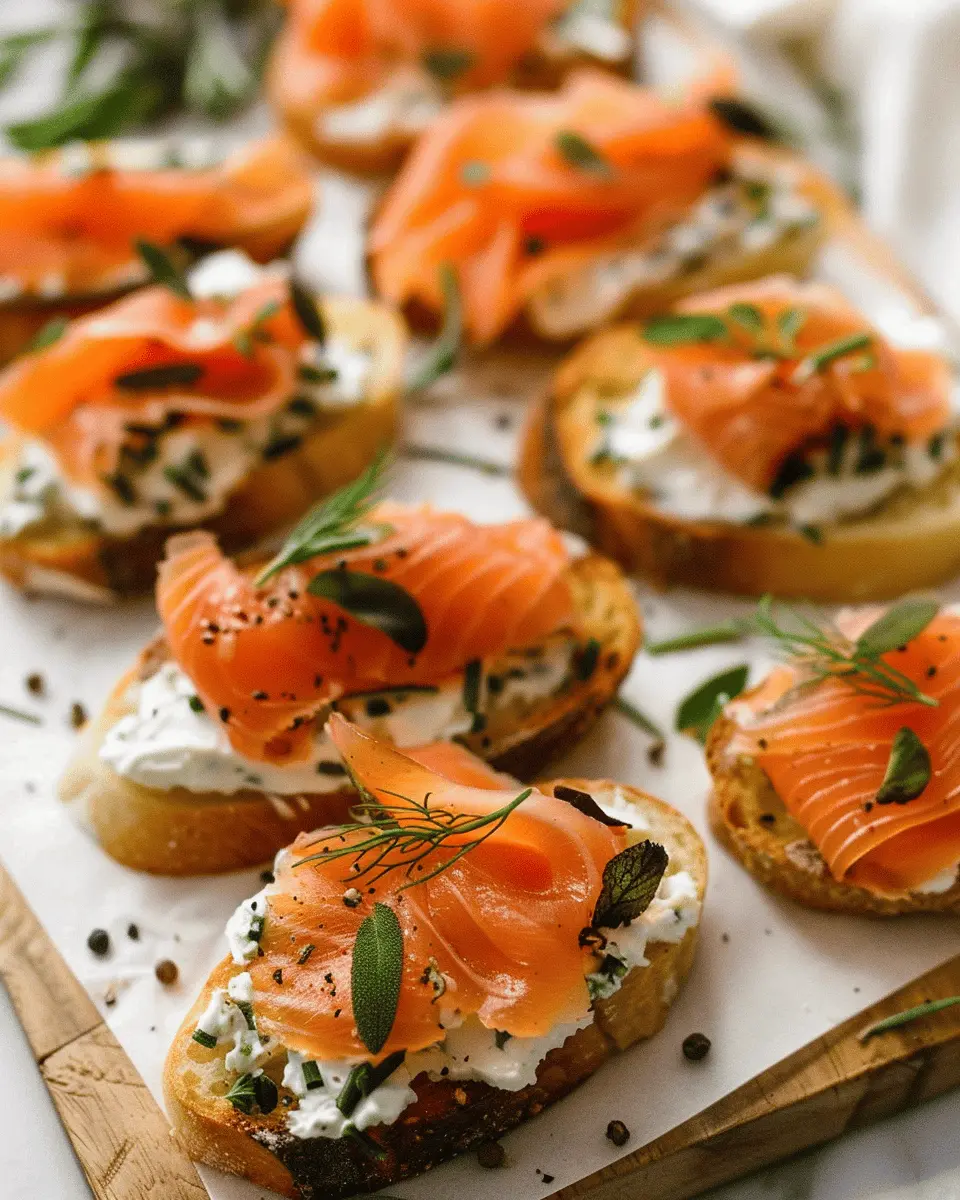 Remember, the beauty of a smoked salmon appetizer is in its simplicity and elegance. You’re not just serving food; you’re crafting an experience that will resonate with your guests long after they’ve left. Whether you’re planning a formal dinner or a casual brunch, smoked salmon crostinis are sure to impress. Ready to make some? Let’s dive into the recipe!