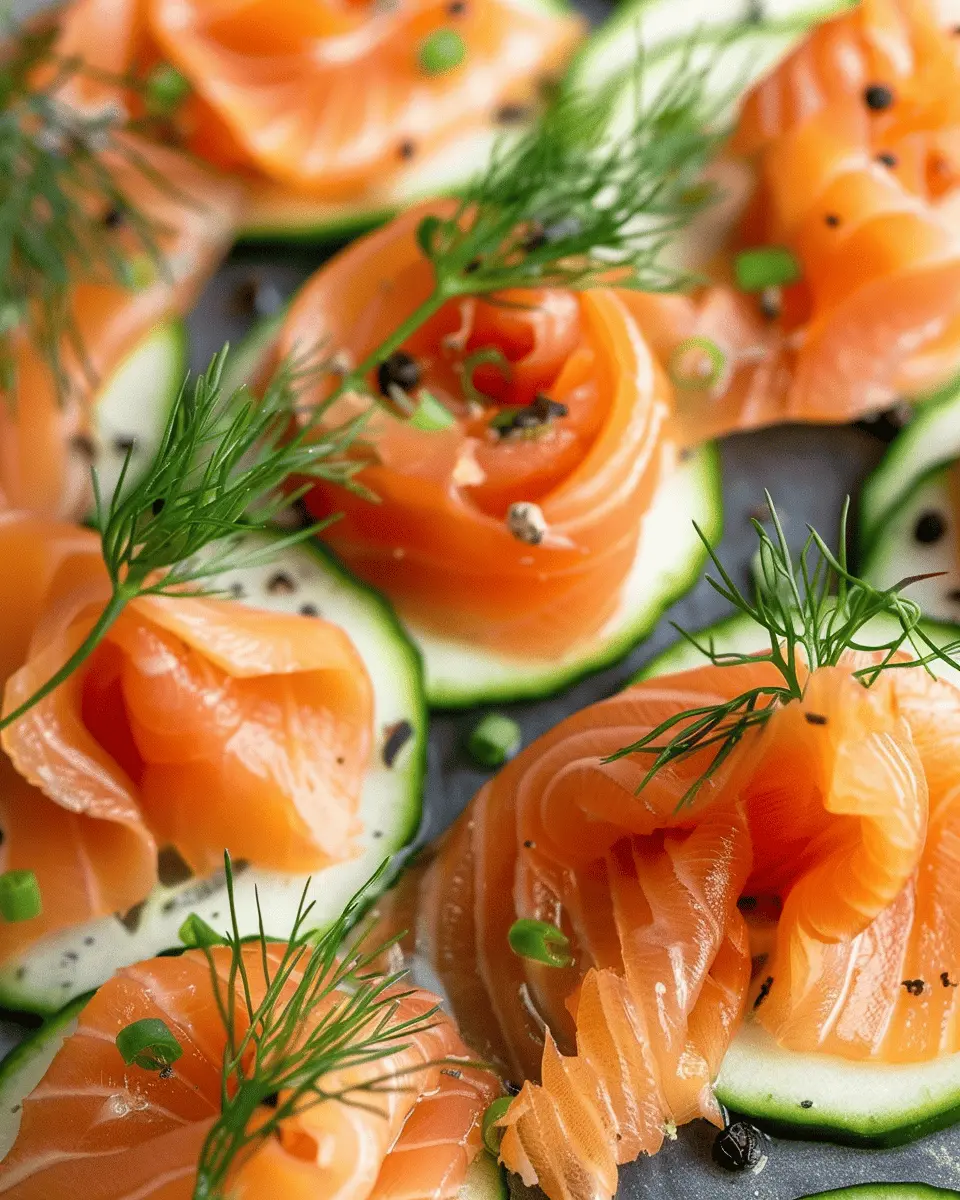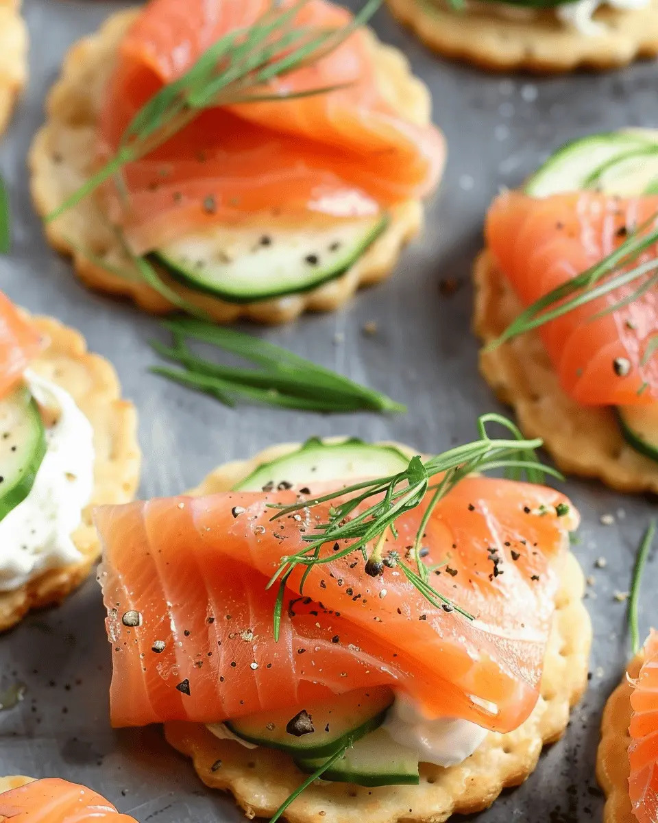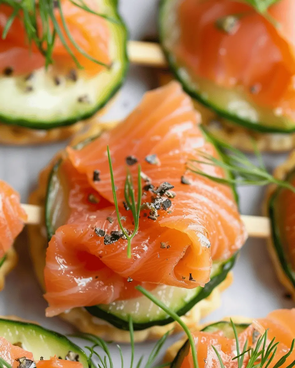 - Mini smoked salmon bites: Layered on cucumber or crackers.