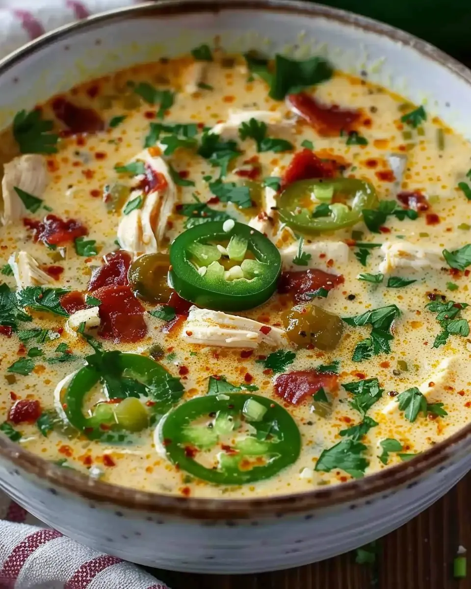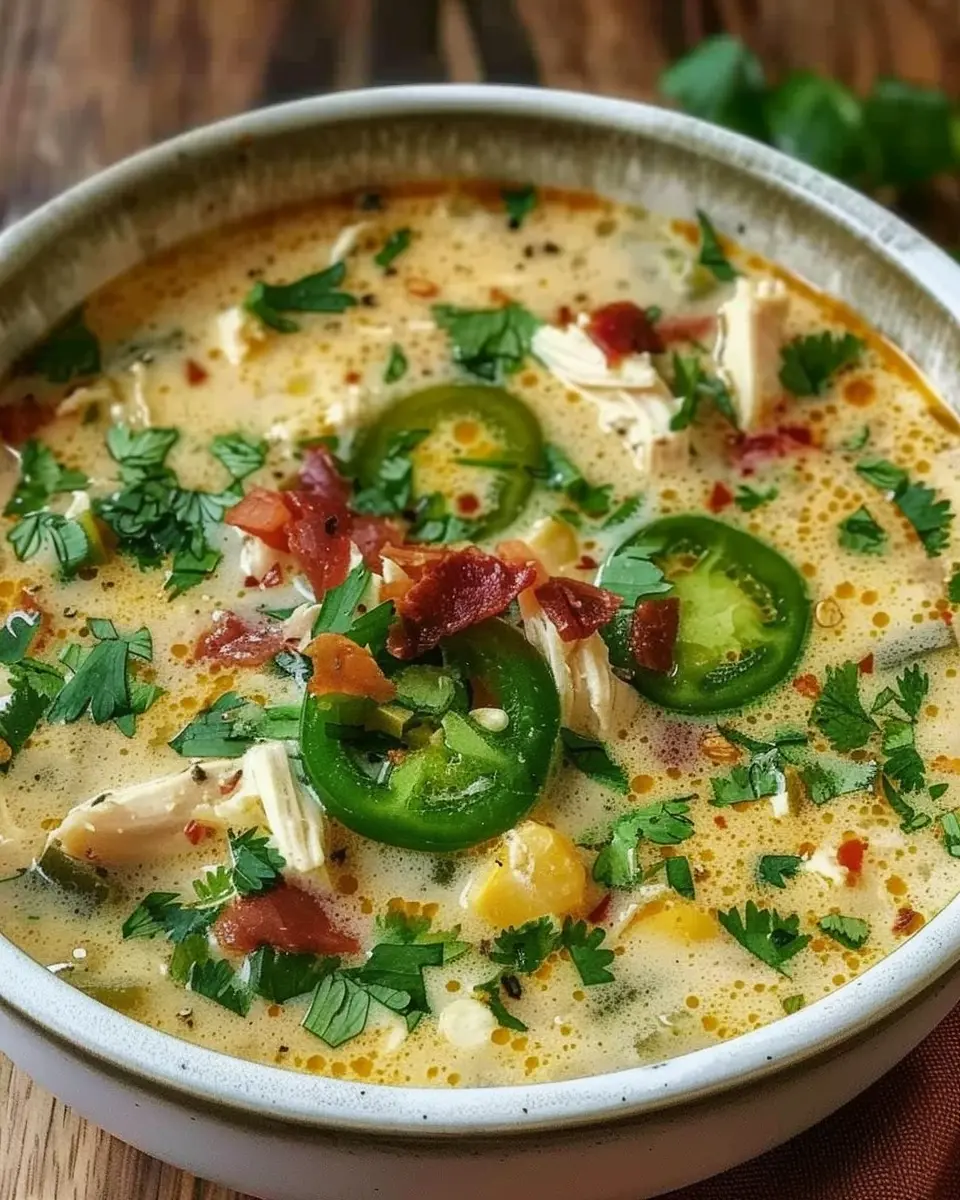 Keywords: Spicy Jalapeño Popper, Chicken Soup, Turkey Bacon, Cozy Soup