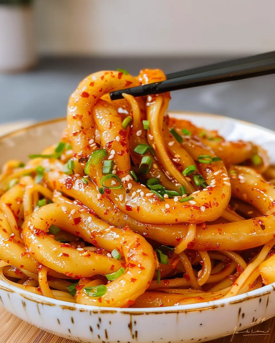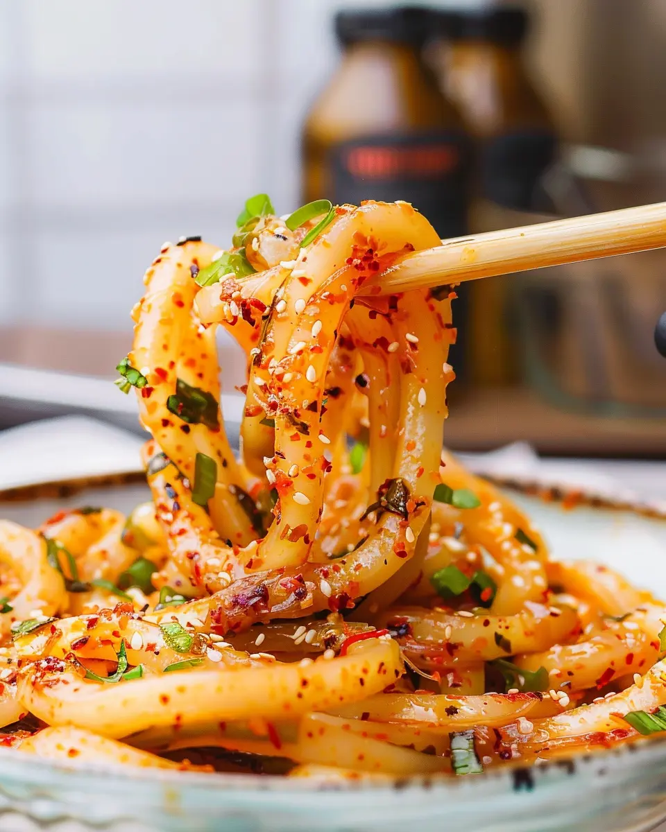 - Combine ingredients: In a bowl, toss your boiled noodles with the prepared chili oil. Add toppings like chopped green onions and sesame seeds for crunch.