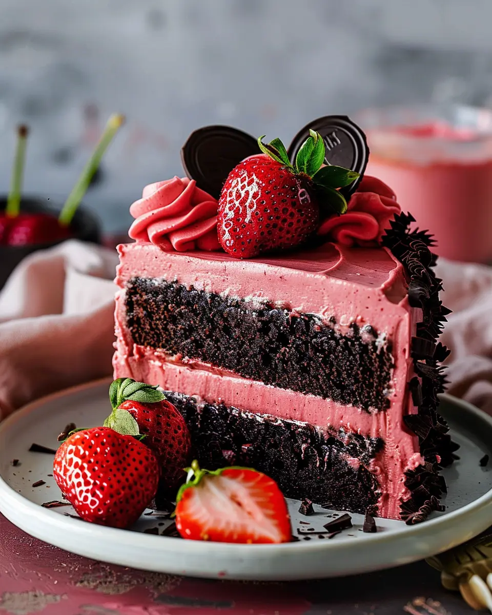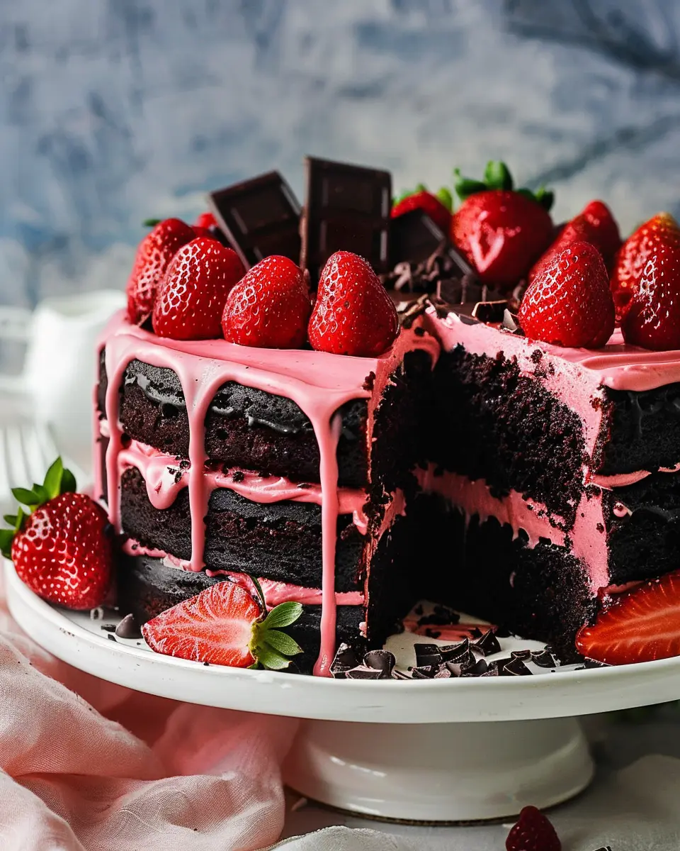 Indulge in this rich and delightful Strawberry Chocolate Cake that perfectly balances the flavors of fresh strawberries and luscious chocolate.
