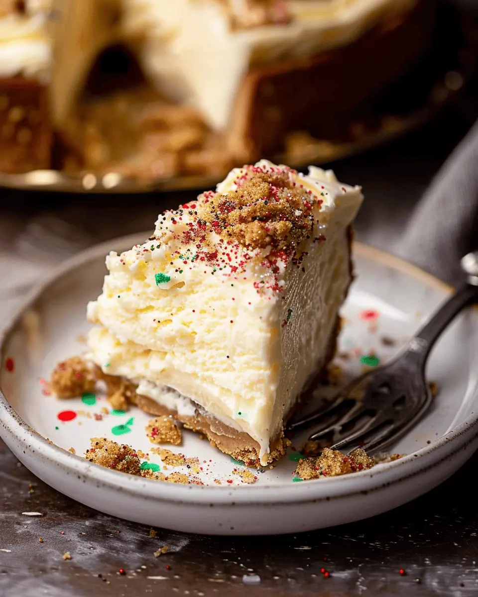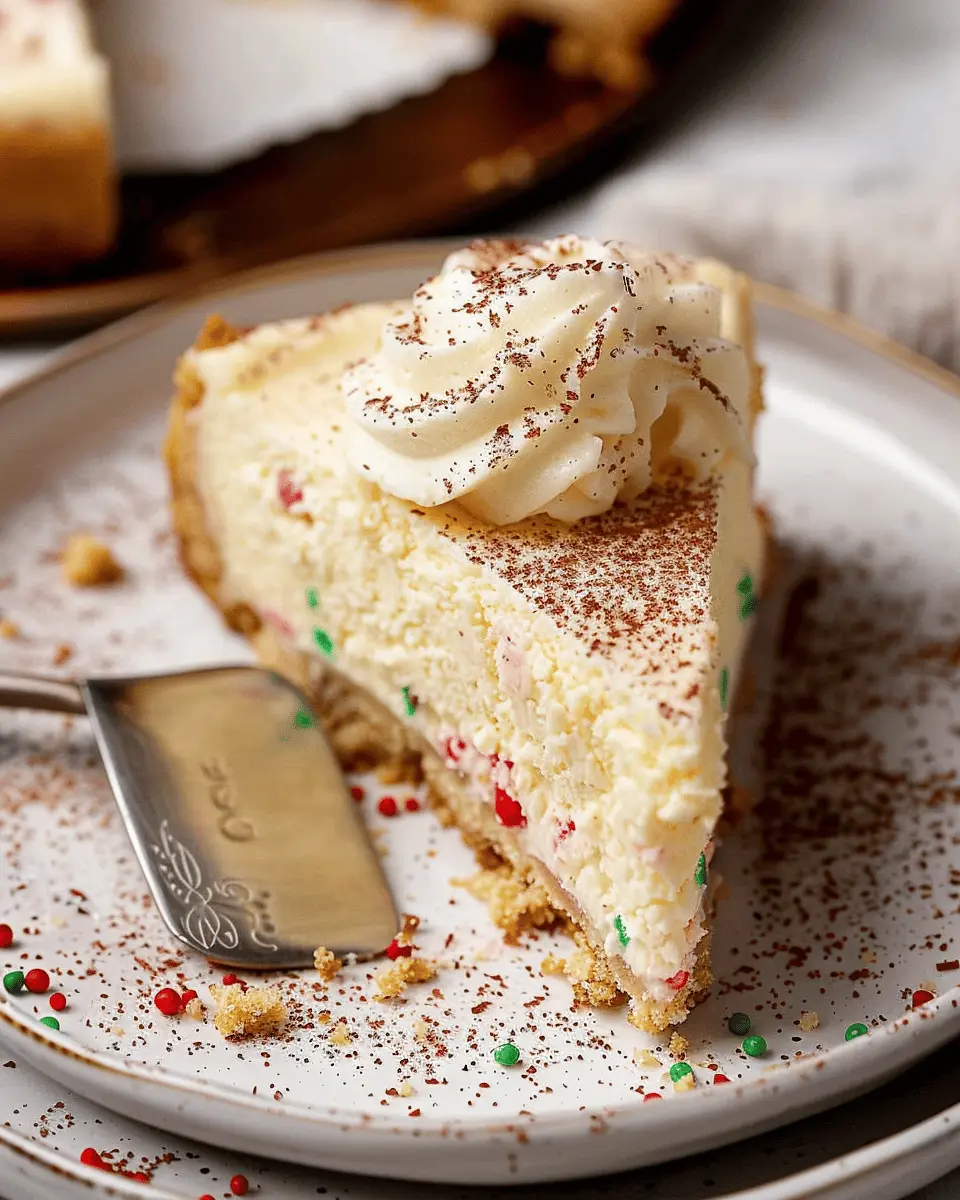 Leftovers? No problem! When storing leftover sugar cookie cheesecake, keep it refrigerated. To serve, simply slice off a piece and let it sit at room temperature for about 20 minutes to enhance its flavor and creaminess. You can also add a dollop of whipped cream, some fresh berries, or a drizzle of chocolate syrup for an extra treat. Not only will this elevate the presentation, but it will also add delightful flavor contrasts that everyone will love.