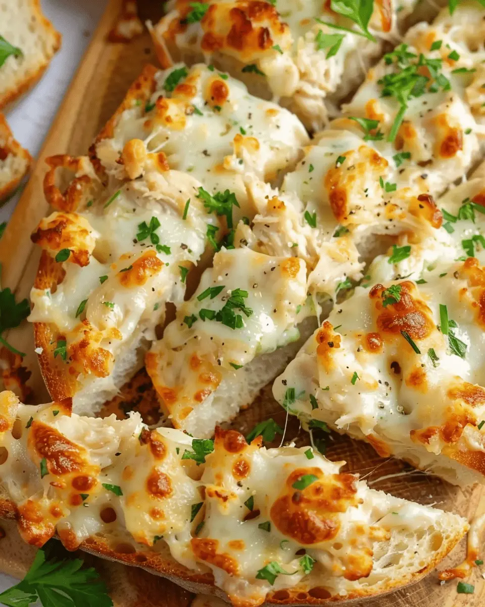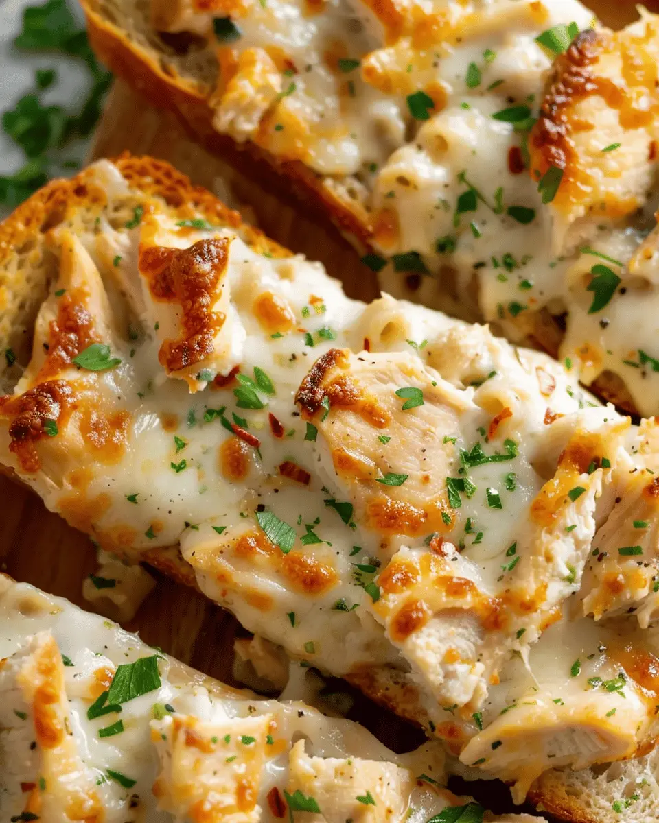 Experience the ultimate comfort food with this indulgent twist on classic garlic bread, featuring creamy chicken Alfredo.